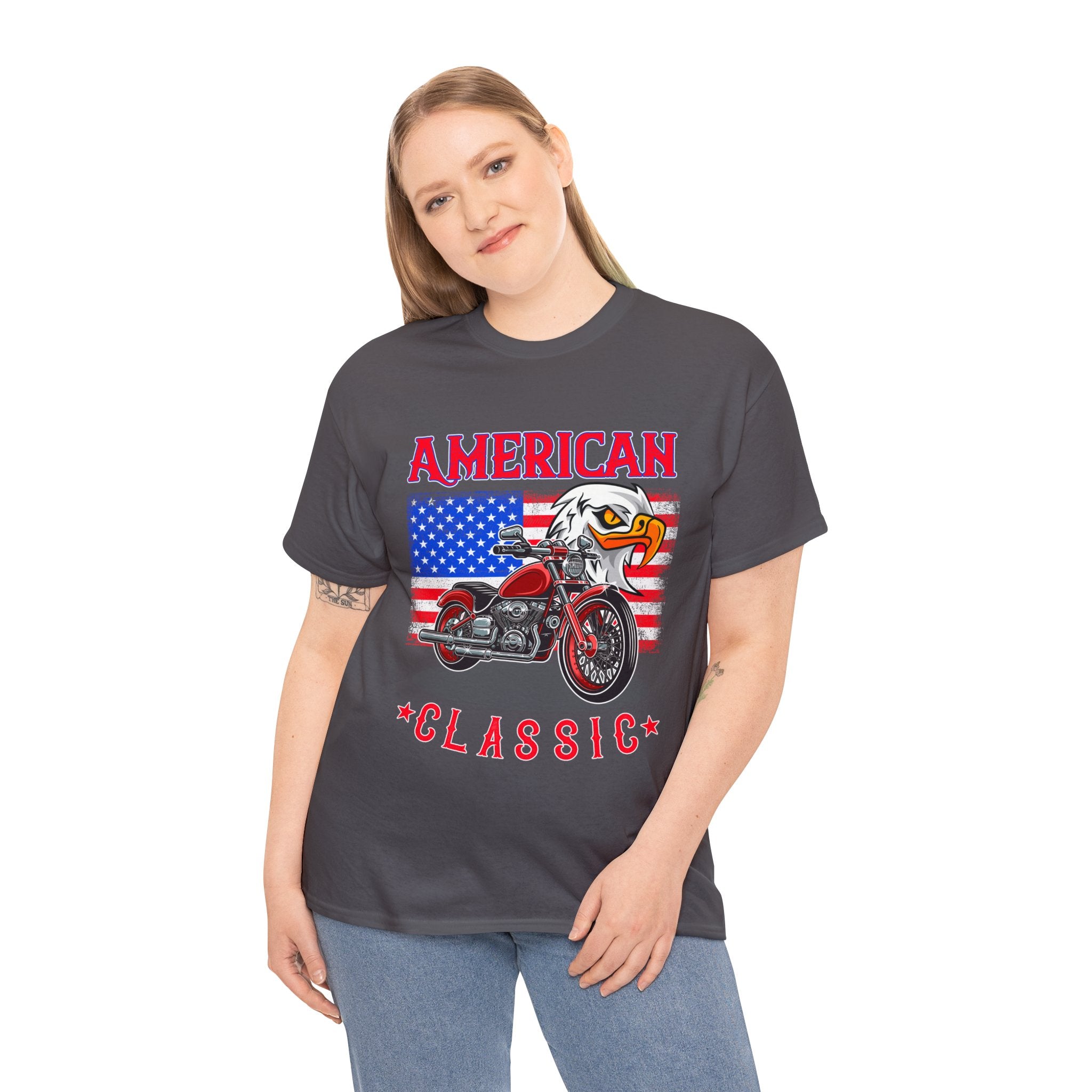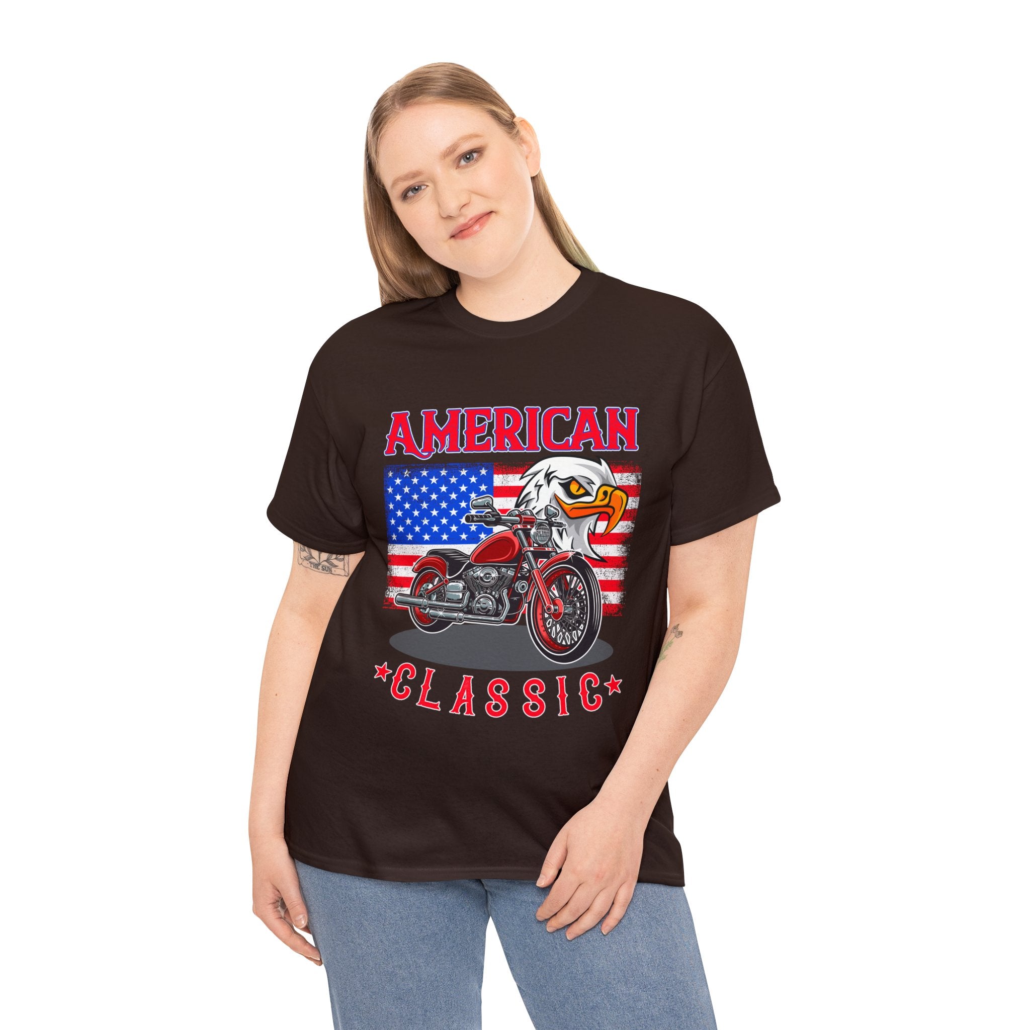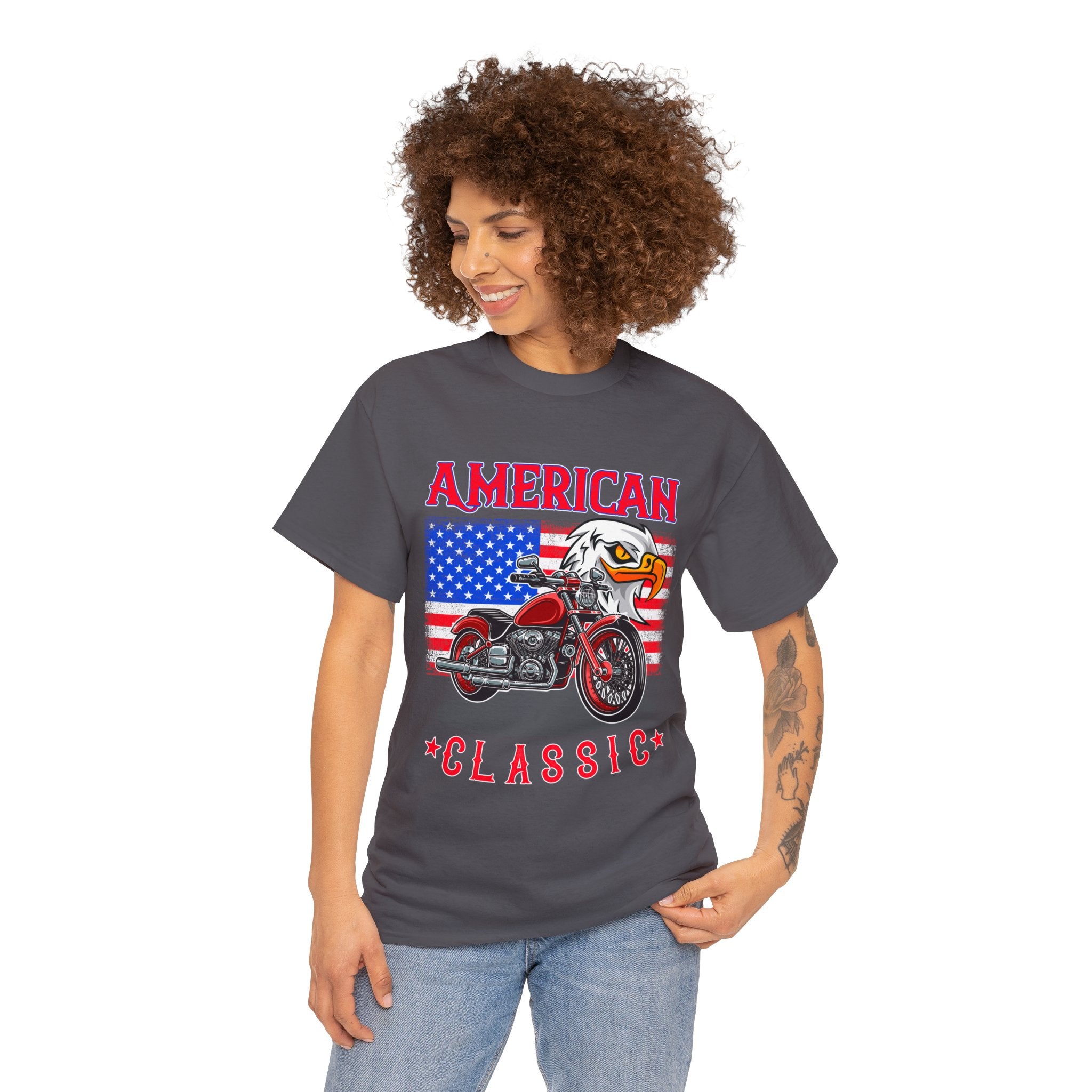 Transport yourself into a living tableau with our "American Classic T-Shirt"—an artistic expression that defies fleeting trends. This isn't just an article of clothing; it's a poetic ode to authenticity. Imagine your style narrating a timeless saga of grace, each fold and seam an effortless dance of heritage, where tradition meets the avant-garde in an eloquent fashion fusion.