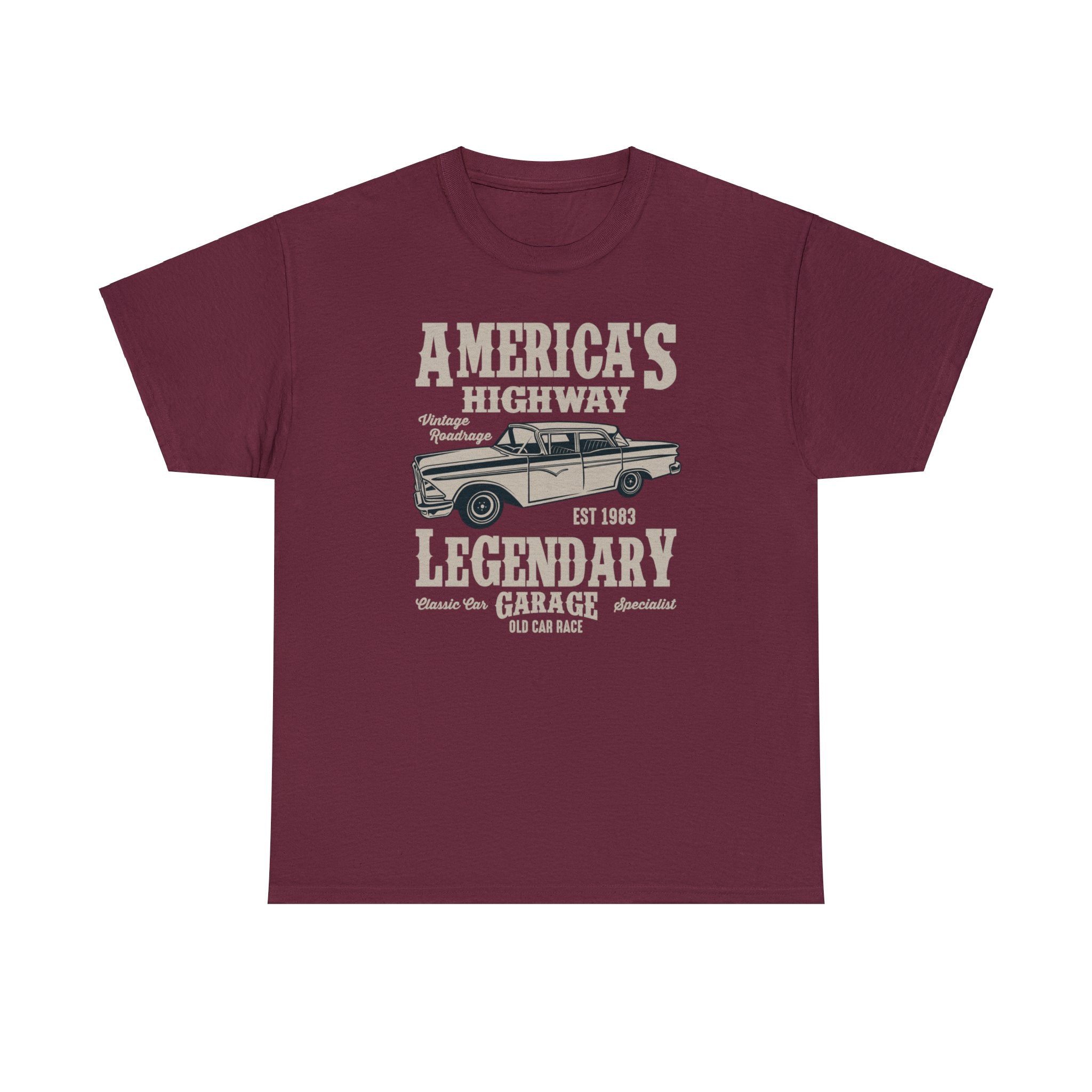 The "America's Highway 1963 T-Shirt" is a nostalgic tribute to a classic American car that rolled onto the scene in 1963. This shirt is designed for automotive enthusiasts who have a deep appreciation for the enduring charm and character of this iconic vehicle. Whether you're a dedicated car lover, a fan of vintage automobiles, or simply someone who values the style and history of this particular car model, this tee allows you to wear your affection for this classic American ride with pride. It captures the essence of a bygone era when this car was a symbol of American automotive excellence, making it a stylish addition to your wardrobe with a touch of automotive nostalgia.