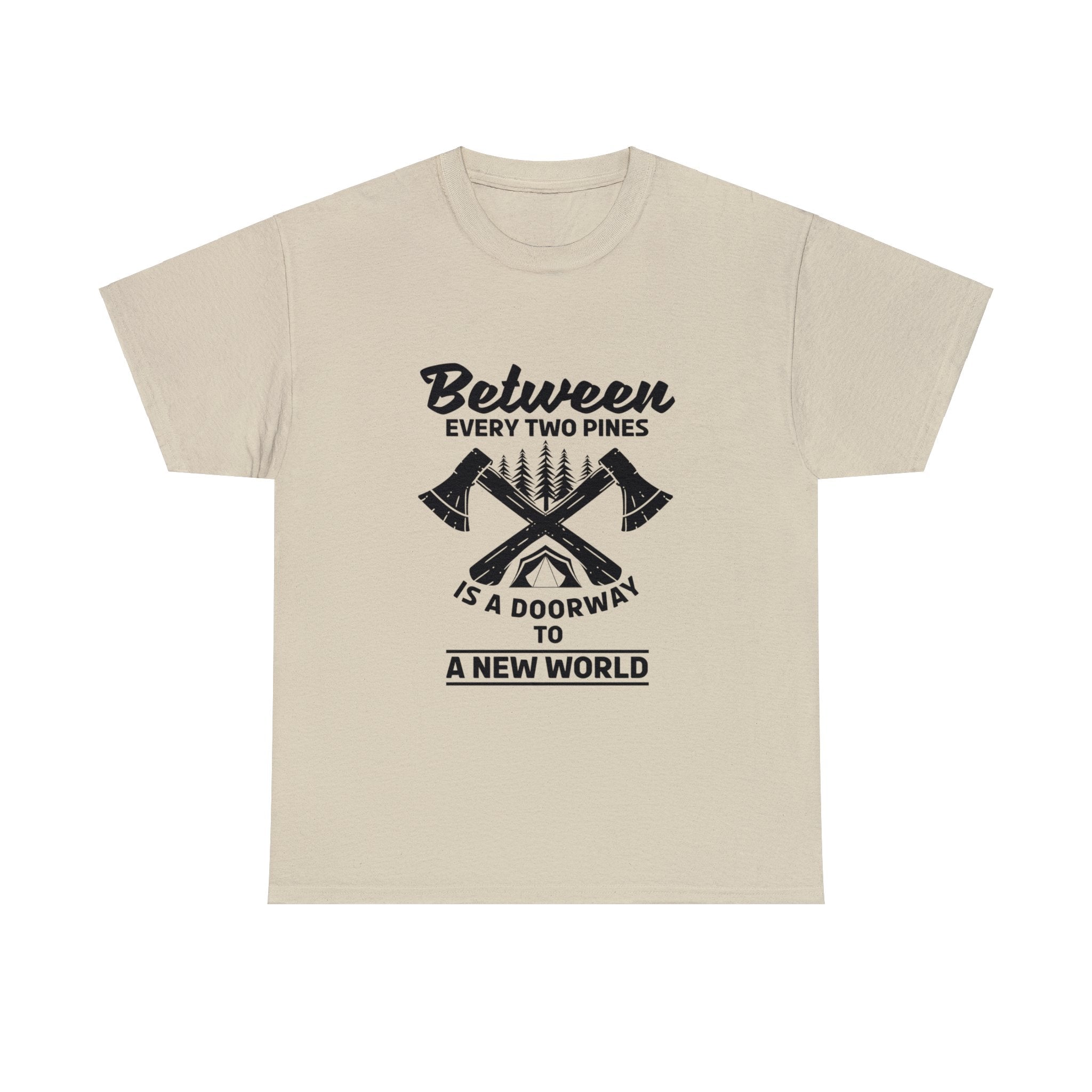 Ready to dive into the forest's enchanting secrets with our ''Between Every Two Pines, Is a Doorway To A New World'' T-shirt? This tee is your pass to a world of hidden stories and untamed beauty. The design embodies the simplicity of life among the trees and pays homage to the bond formed with nature. Whether you're an explorer, a lover of open spaces, or someone who finds rejuvenation in the mysteries of the forest, this tee lets you express your deep affection for the magic of the woods in a stylish and engaging way. It's your emblem of belonging to the community of nature enthusiasts and your open invitation to keep discovering the forest with style.