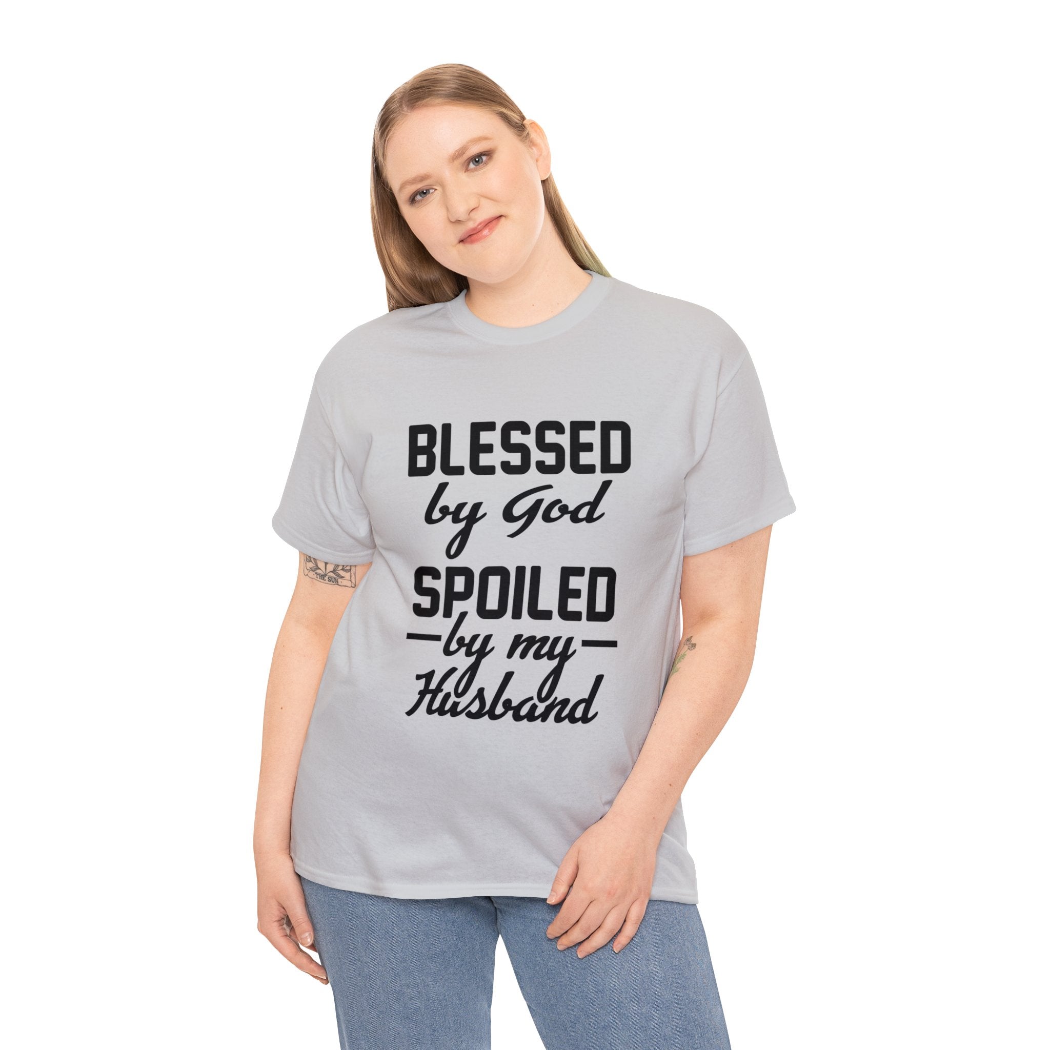 Celebrate the abundant blessings of faith and the love you share with your husband with our ''Blessed By God, Spoiled By My Husband T-Shirt.'' This shirt transcends mere fashion; it's a heartwarming expression of your deep connection to both your faith and your life partner. Crafted with care and designed for both comfort and style, it showcases the beauty of a faith-filled relationship, symbolizing the love that has enriched your life. Wear it with pride and gratitude, allowing your shirt to tell the story of your faith and the love you cherish.