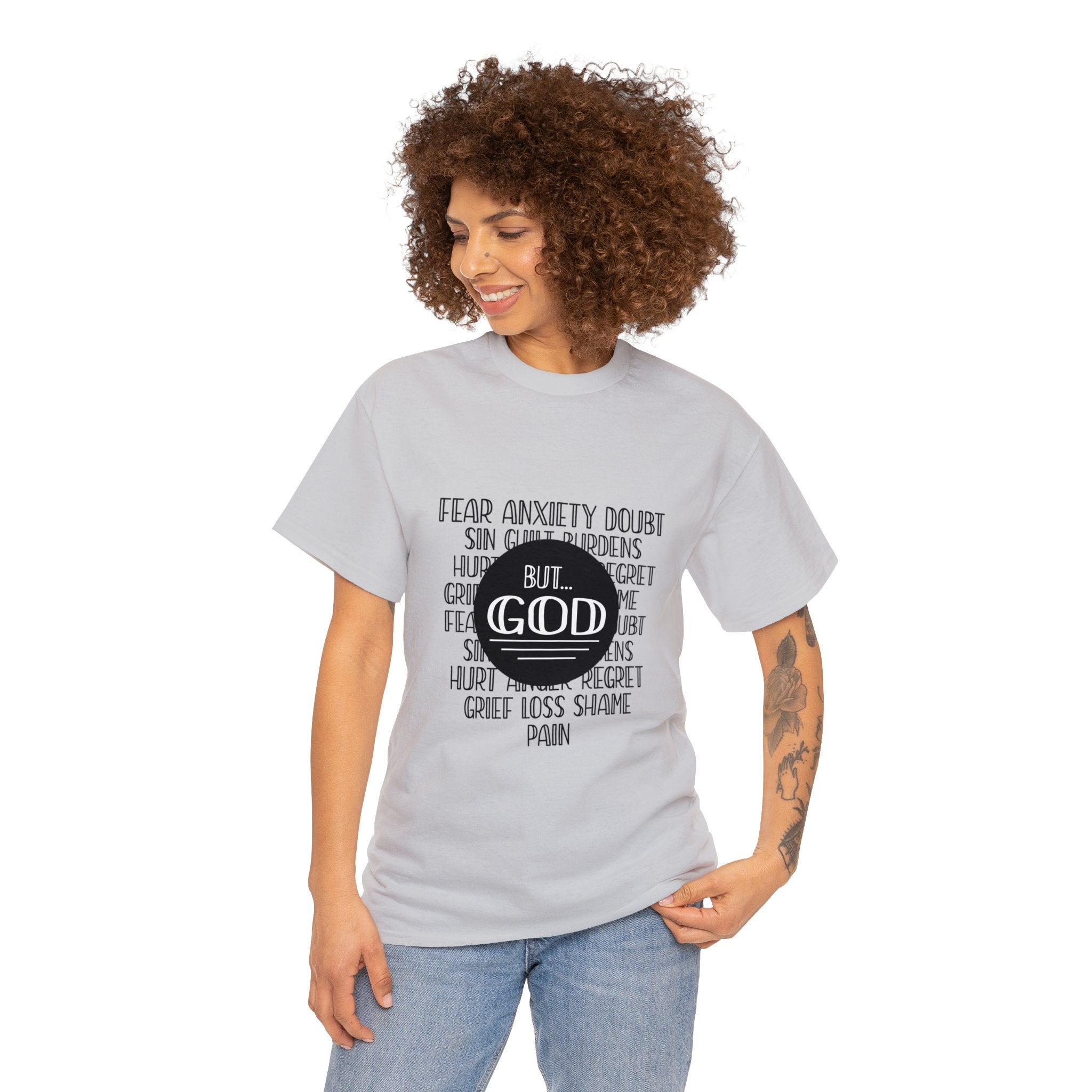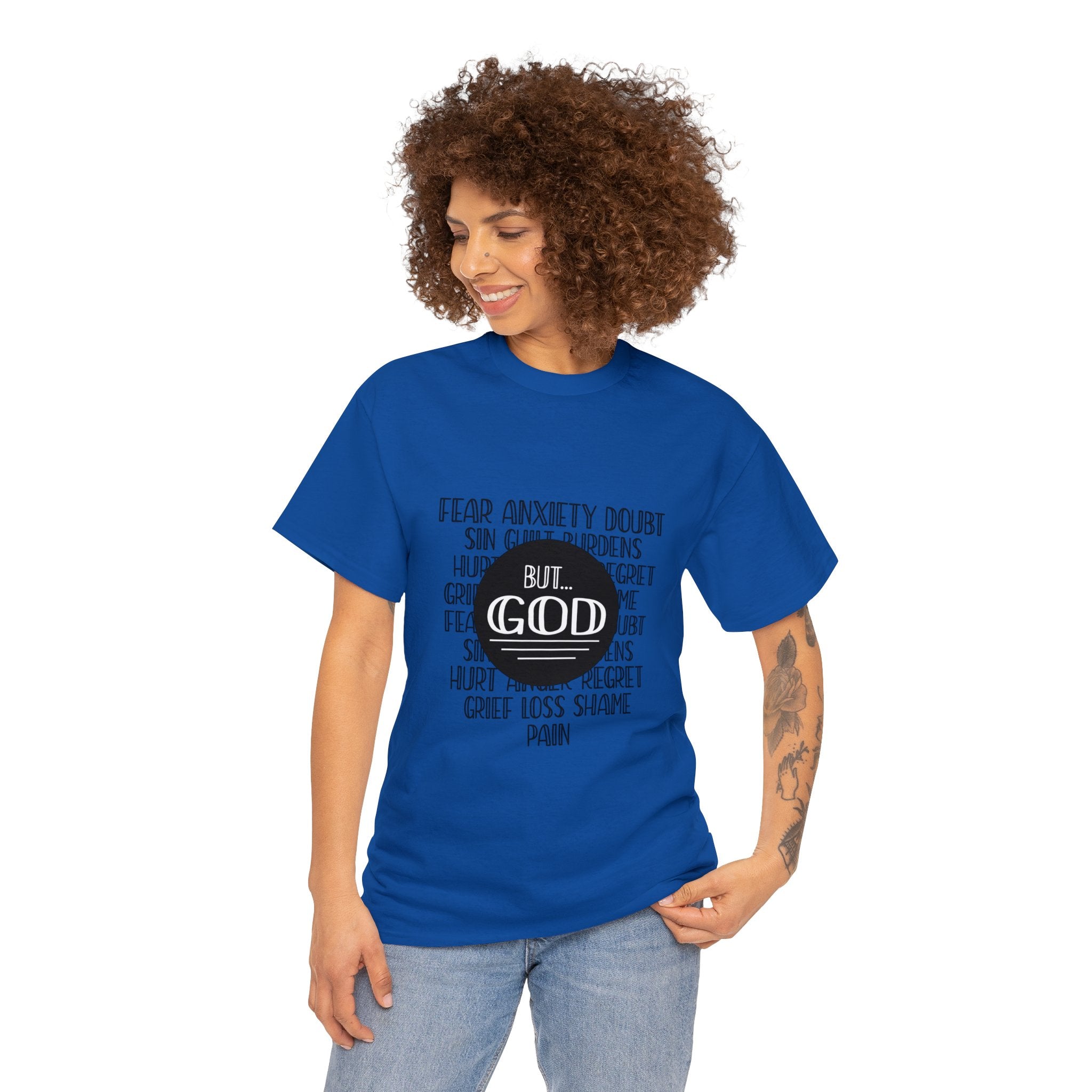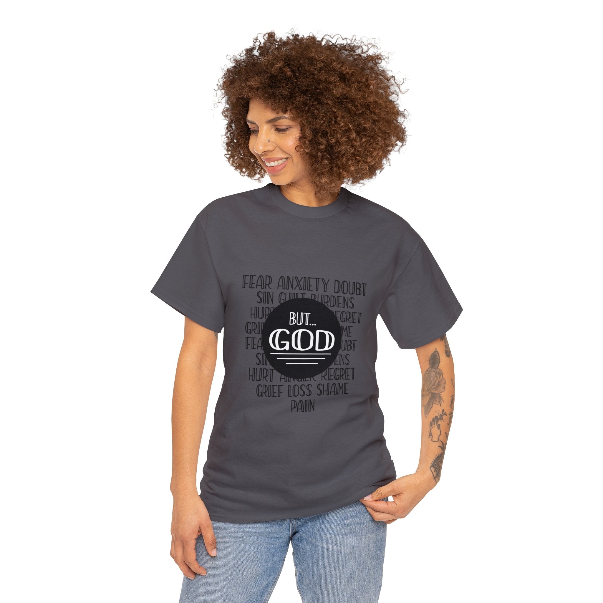 Discover the perfect fusion of divine grace and unwavering resilience with our ''But... God T-Shirt.'' This unique and stylish tee is more than just clothing; it's a visual representation of the transformative power of faith. Crafted for ultimate comfort and made with top-notch materials, it's not just a shirt; it's a powerful reminder of the incredible strength that comes from trusting in God. As you wear this tee, you're not just making a fashion statement; you're becoming a beacon of hope and a testament to the extraordinary influence of faith. Embrace the opportunity to let your fashion choices reflect your unshakeable commitment to grace and resilience.