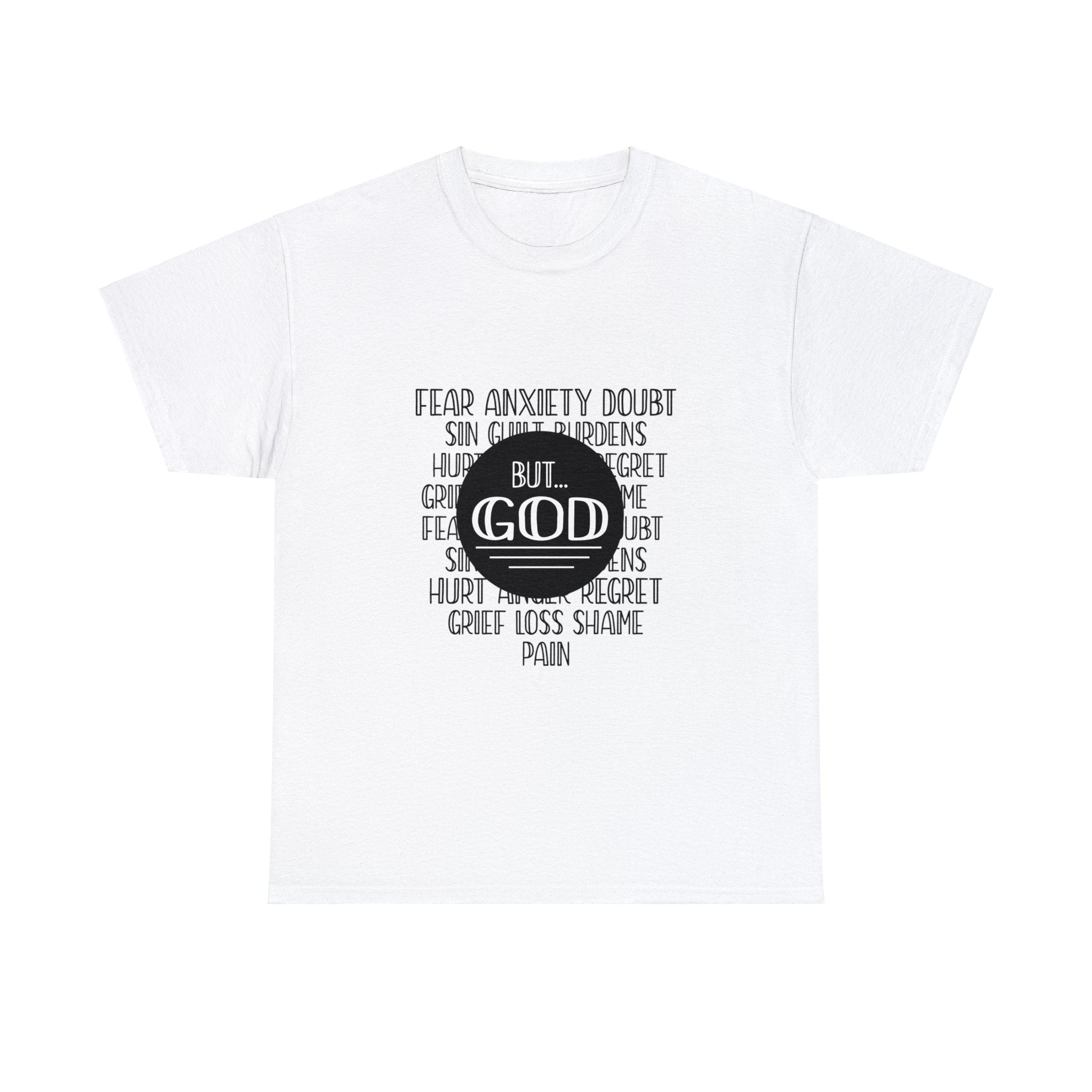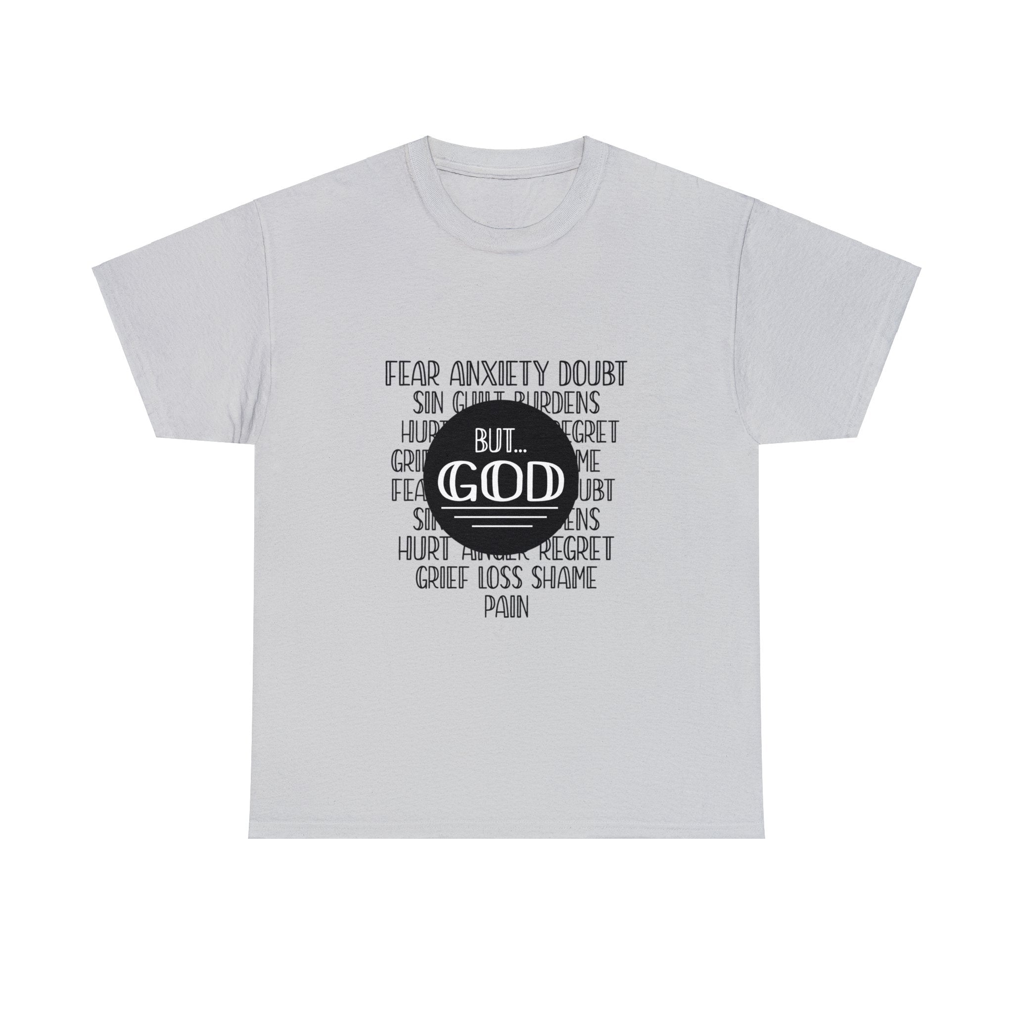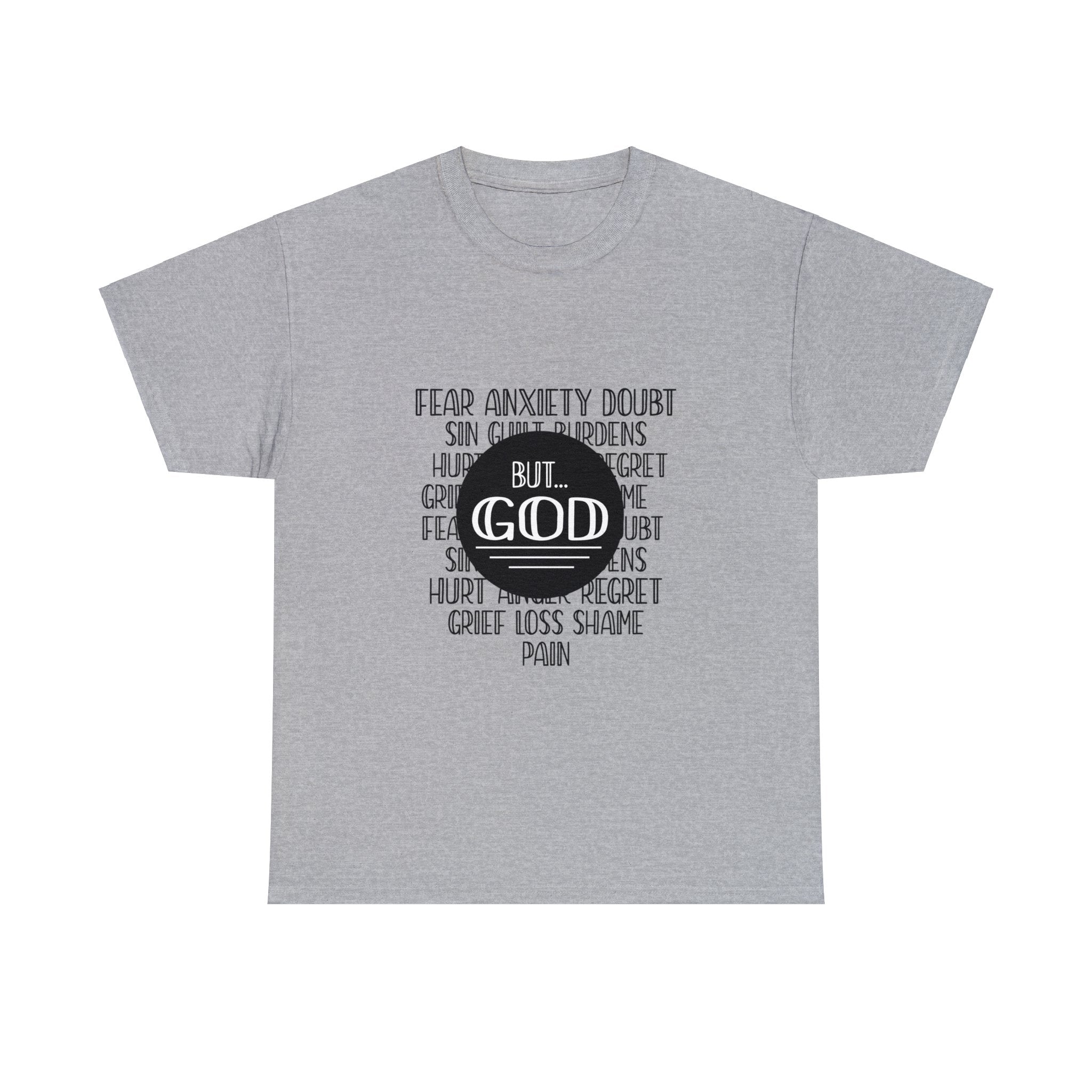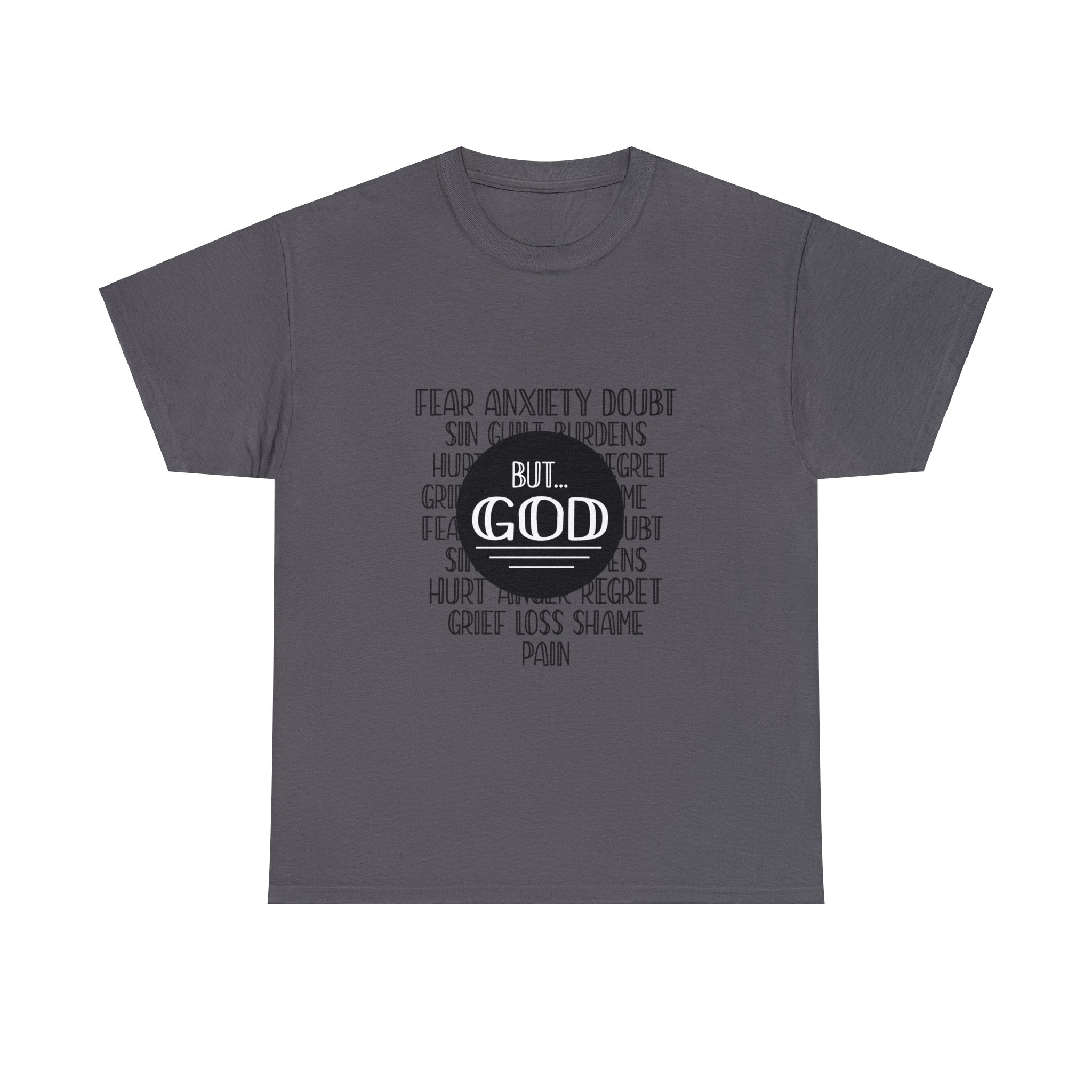 Discover the perfect fusion of divine grace and unwavering resilience with our ''But... God T-Shirt.'' This unique and stylish tee is more than just clothing; it's a visual representation of the transformative power of faith. Crafted for ultimate comfort and made with top-notch materials, it's not just a shirt; it's a powerful reminder of the incredible strength that comes from trusting in God. As you wear this tee, you're not just making a fashion statement; you're becoming a beacon of hope and a testament to the extraordinary influence of faith. Embrace the opportunity to let your fashion choices reflect your unshakeable commitment to grace and resilience.