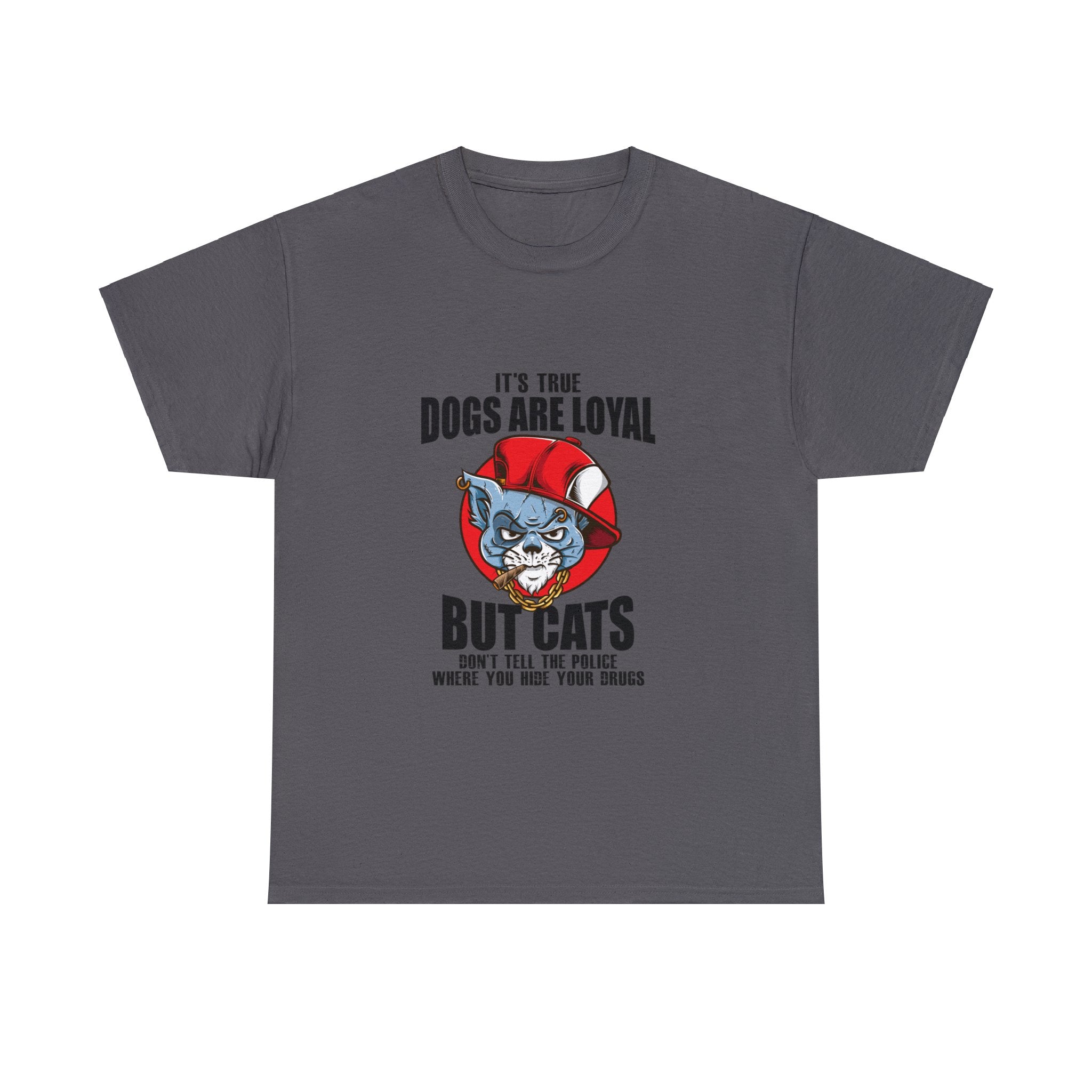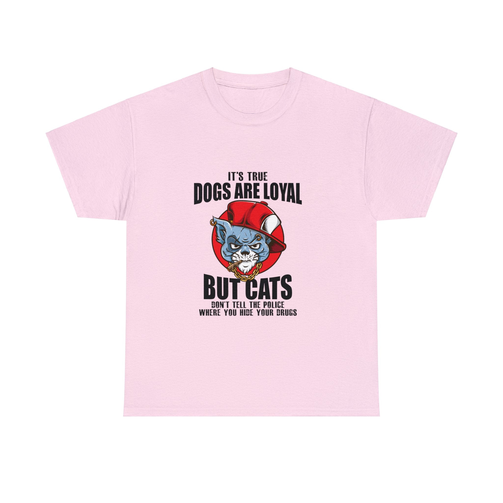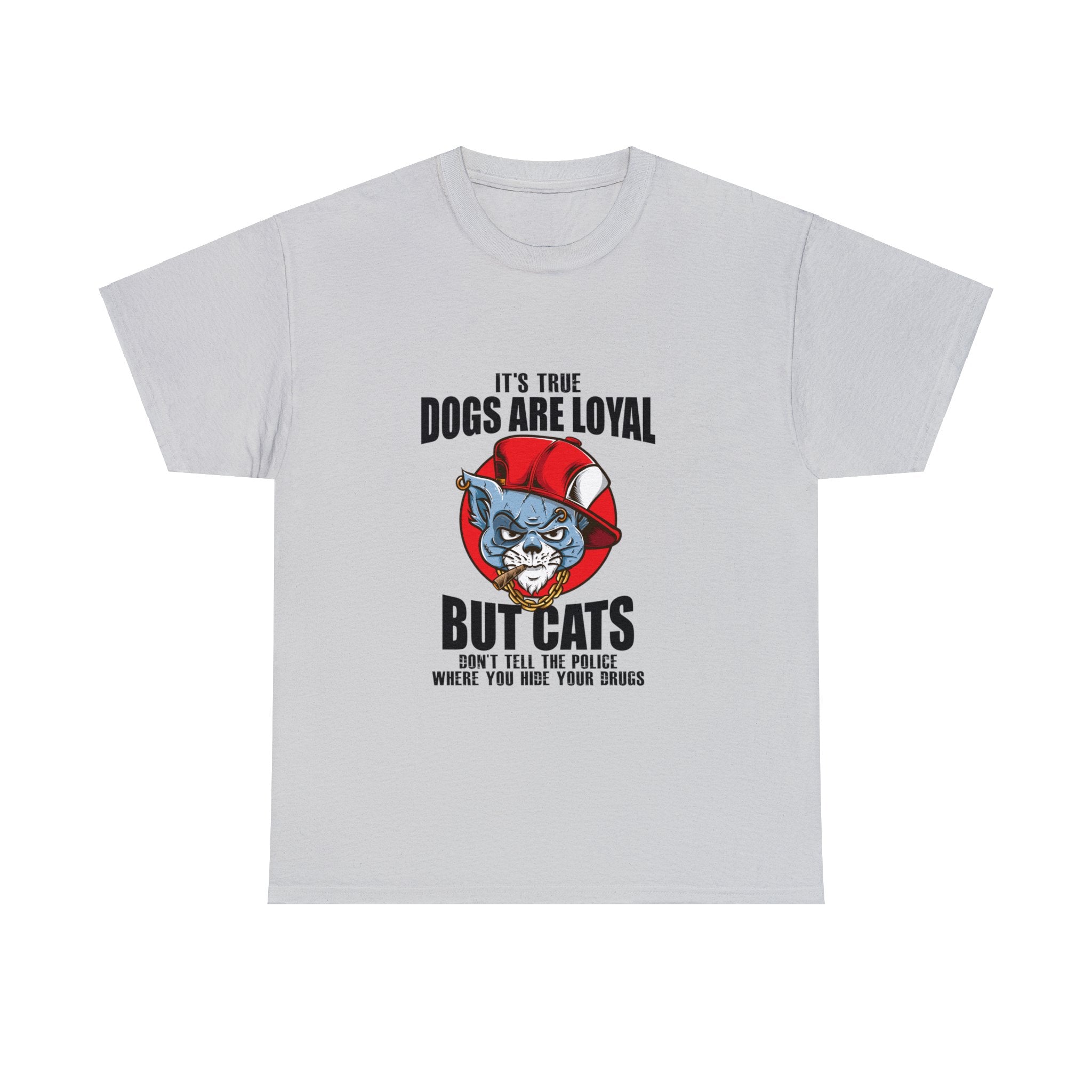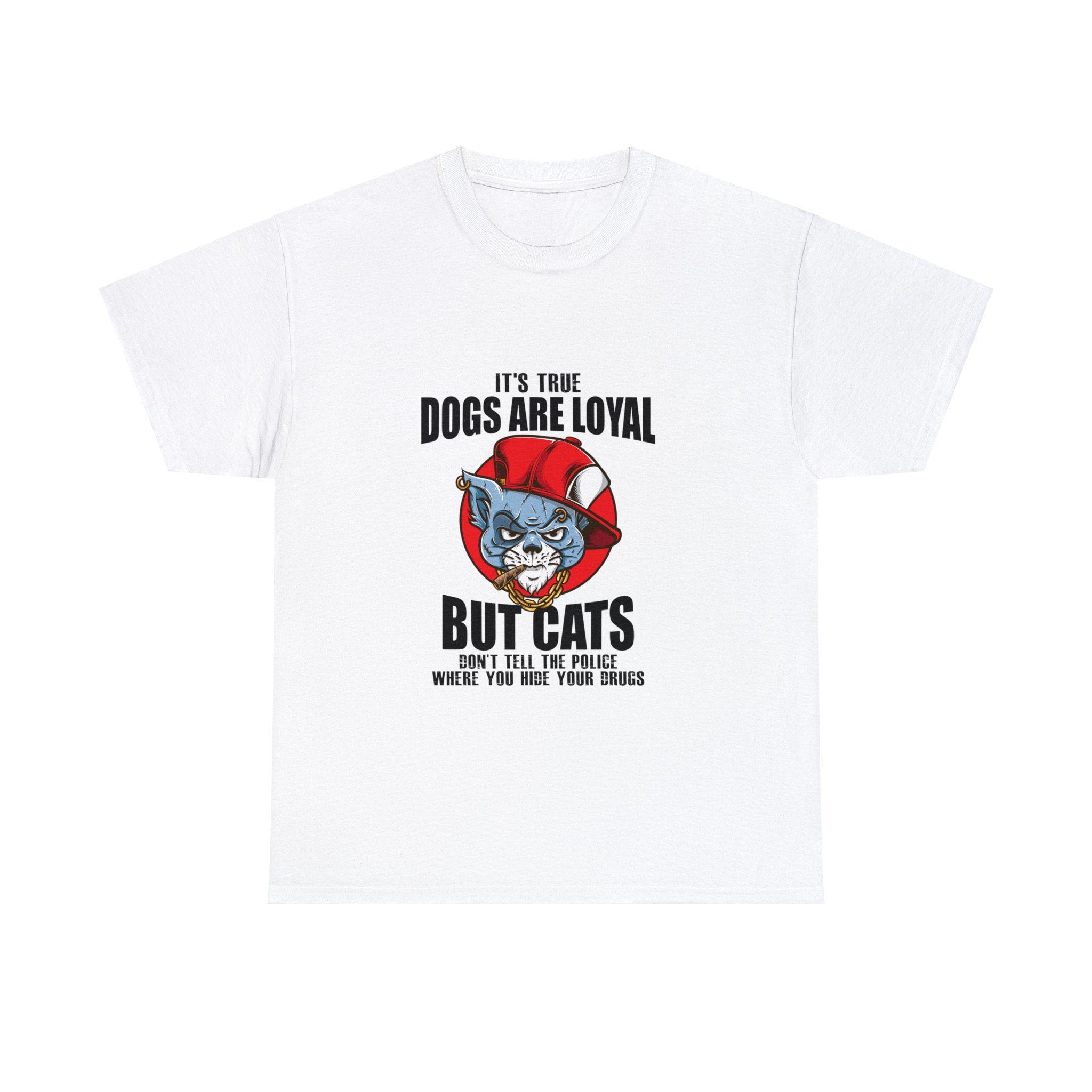 Keep your secrets safe with this hilarious tee that pokes fun at the trustworthy nature of cats. The mischievous cat design and the witty phrase "Cats Don't Tell The Police Where You Hide Your Drugs" will put a smile on any cat lover's face. Whether you're hiding your stash or just want to show off your sense of humor, this shirt is a must-have for any cat aficionado.