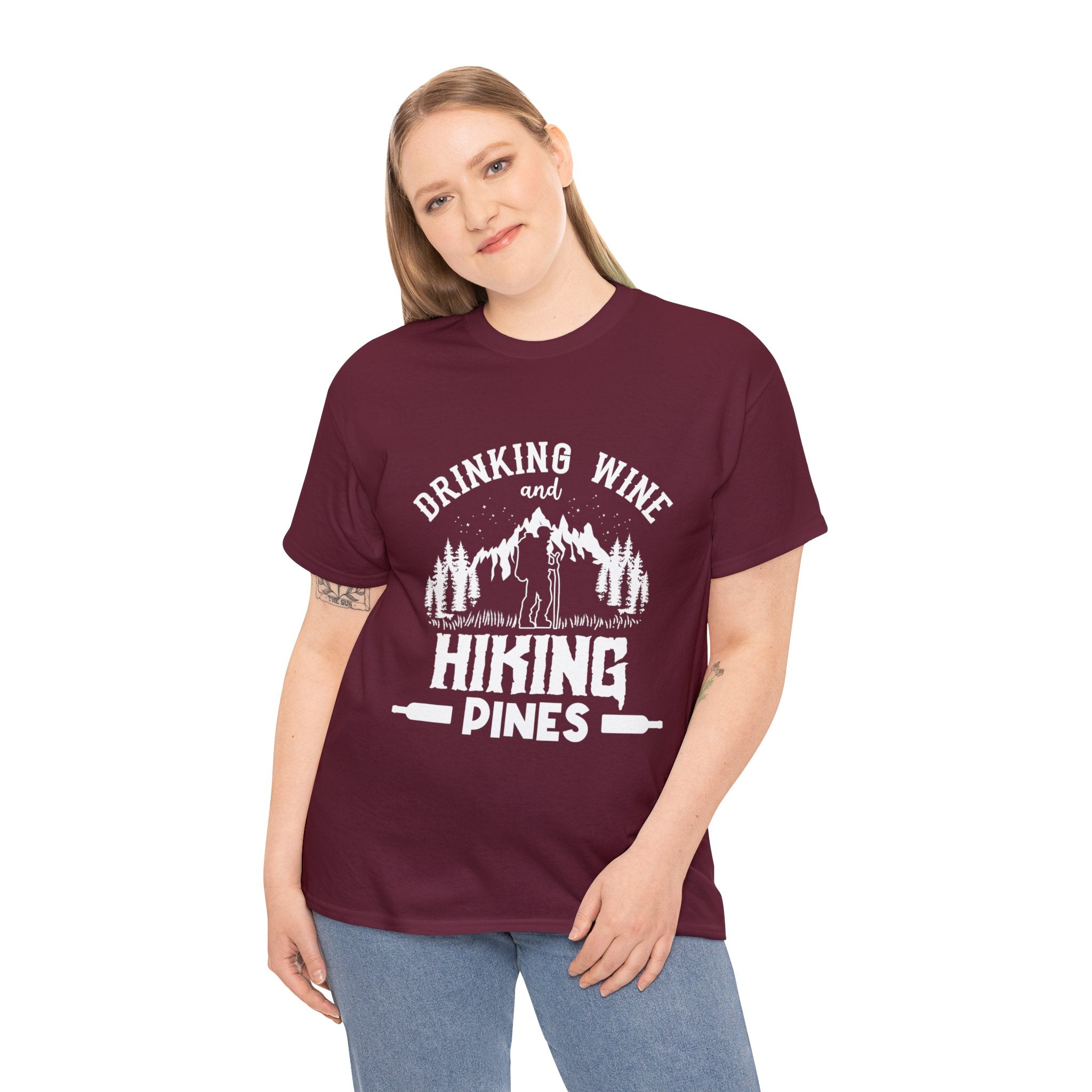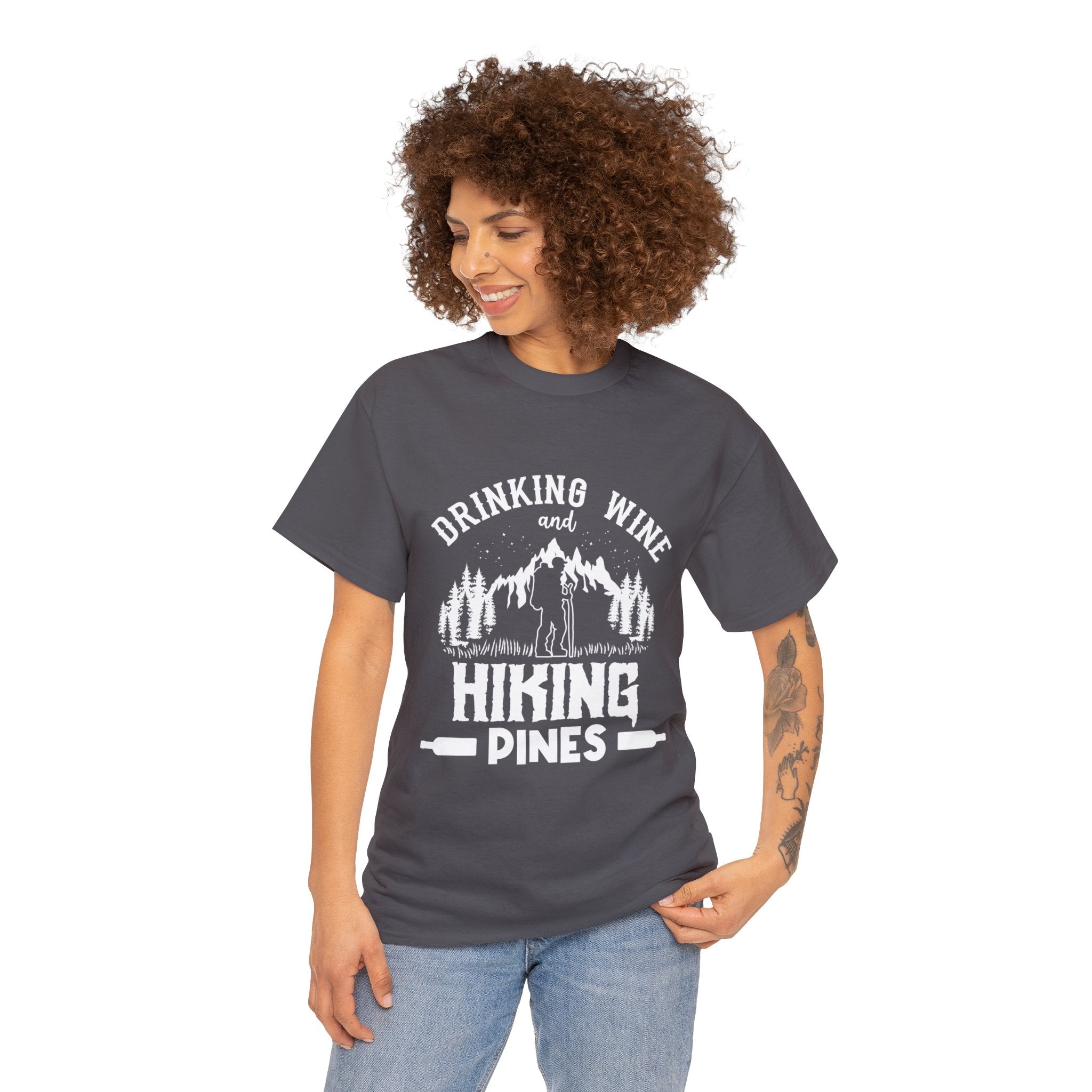 Ready to hike and unwind with style? Our ''Drinking Wine & Hiking Pines T-Shirt'' is your go-to outfit for a perfect day out in nature. The design embodies the simplicity of sipping wine and enjoying the beauty of the great outdoors, paying homage to the art of relaxation. Whether you're a casual hiker who appreciates wine or someone who enjoys a glass of your favorite vintage on the trail, this tee lets you express your relaxed and playful side. It's your emblem of belonging to the community of outdoor enthusiasts who know how to have fun while enjoying the beauty of the wilderness.