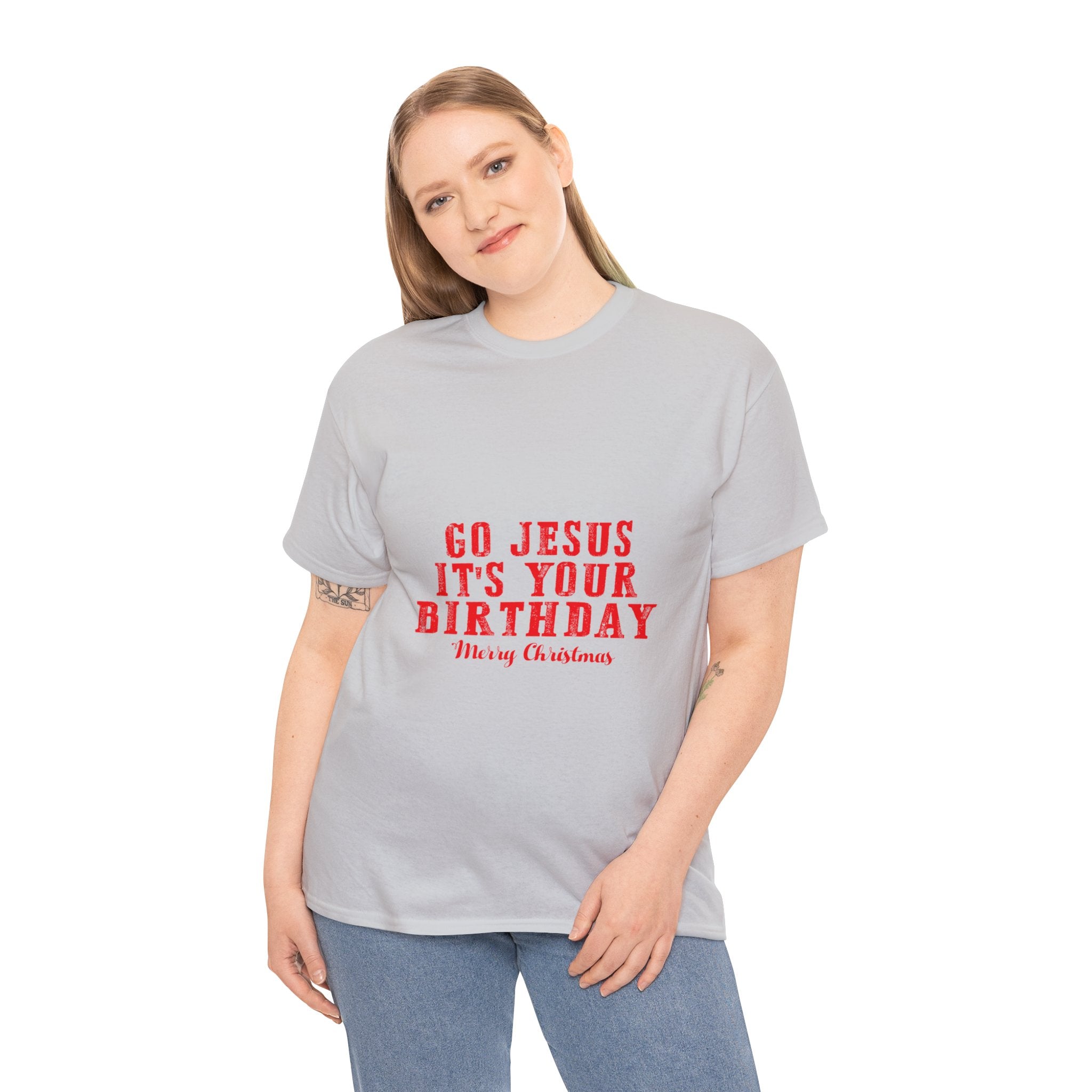 Mark the Savior's special day with our ''Go Jesus, It's Your Birthday T-Shirt.'' This festive tee is more than just clothing; it's a joyful expression of your faith and a heartfelt tribute to the momentous occasion when Jesus came into the world. Skillfully designed for both comfort and style, this shirt allows you to celebrate the true meaning of Christmas while making a unique and spirited statement. Wear it proudly during the holiday season to spread the joy of faith and the love of Jesus wherever you go, reminding everyone that Christmas is truly about Him.