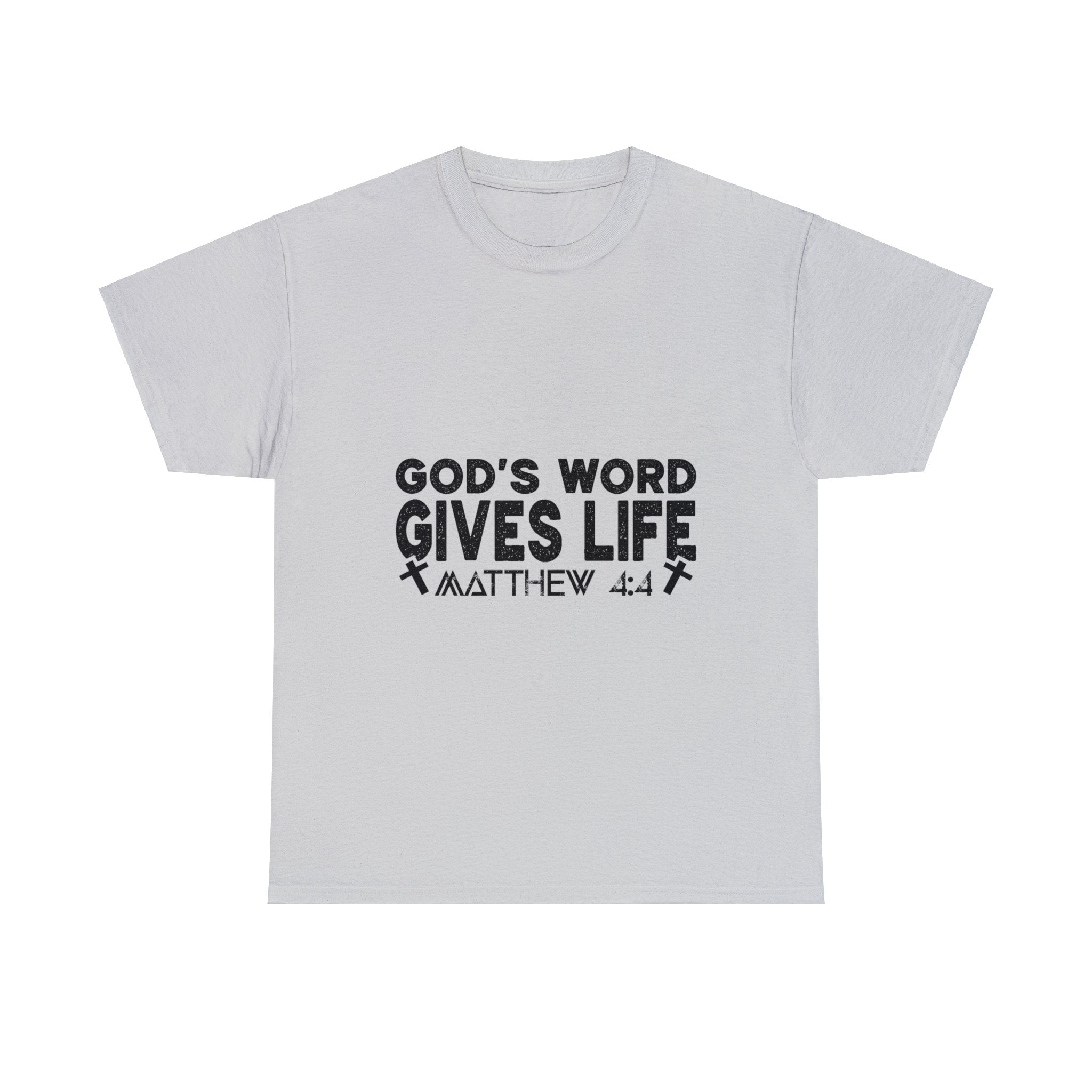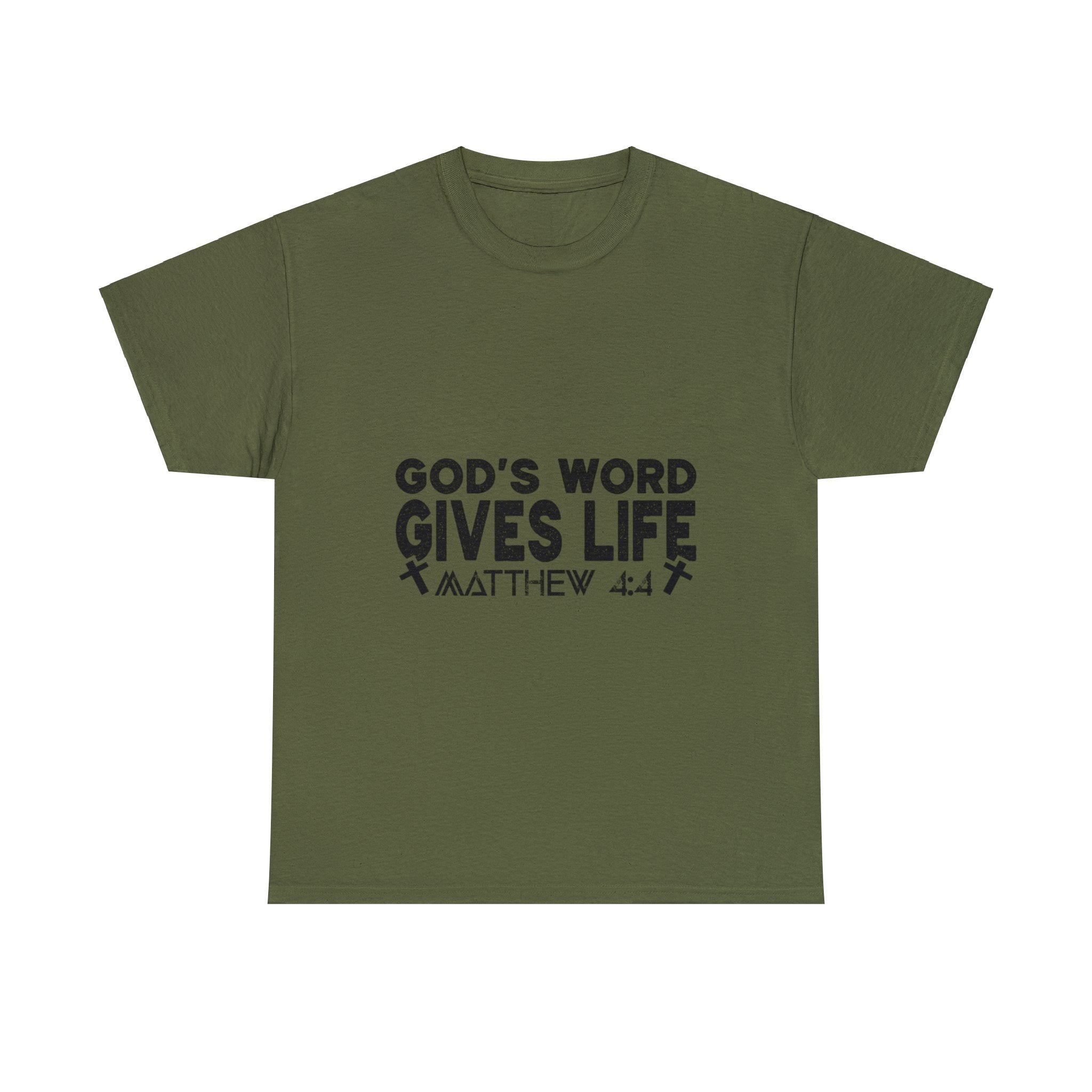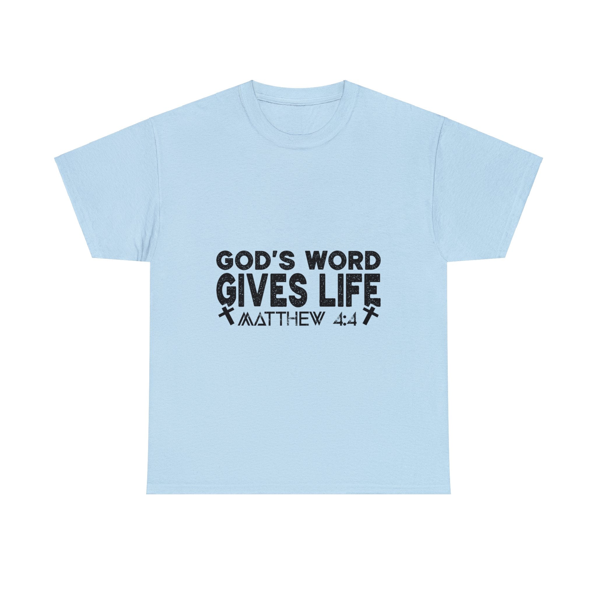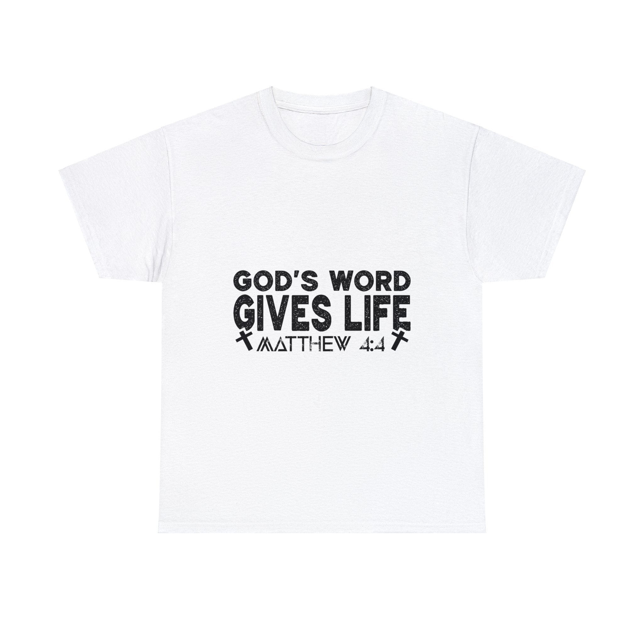 Embrace the life-giving power of faith with our ''God's Word Gives Life T-Shirt.'' This exceptional tee goes beyond fashion; it's a symbol of the transformative and rejuvenating strength found in God's word. Carefully crafted for comfort and style, it allows you to carry your spirituality with grace and pride. As you wear this shirt, you're not just making a fashion statement; you're sharing the message that God's word brings life and hope to all who embrace it. Let your clothing become a testament to your unwavering trust in divine guidance