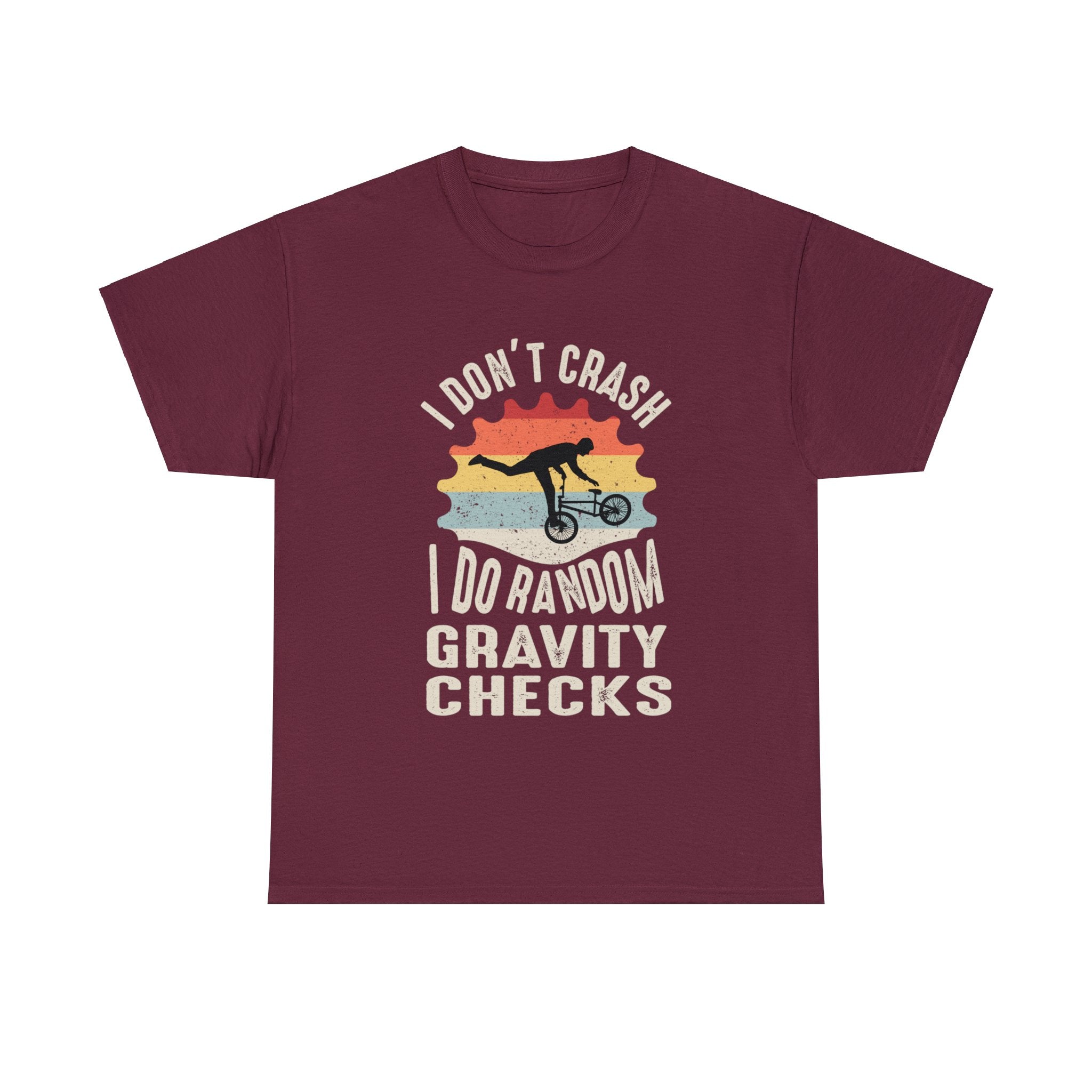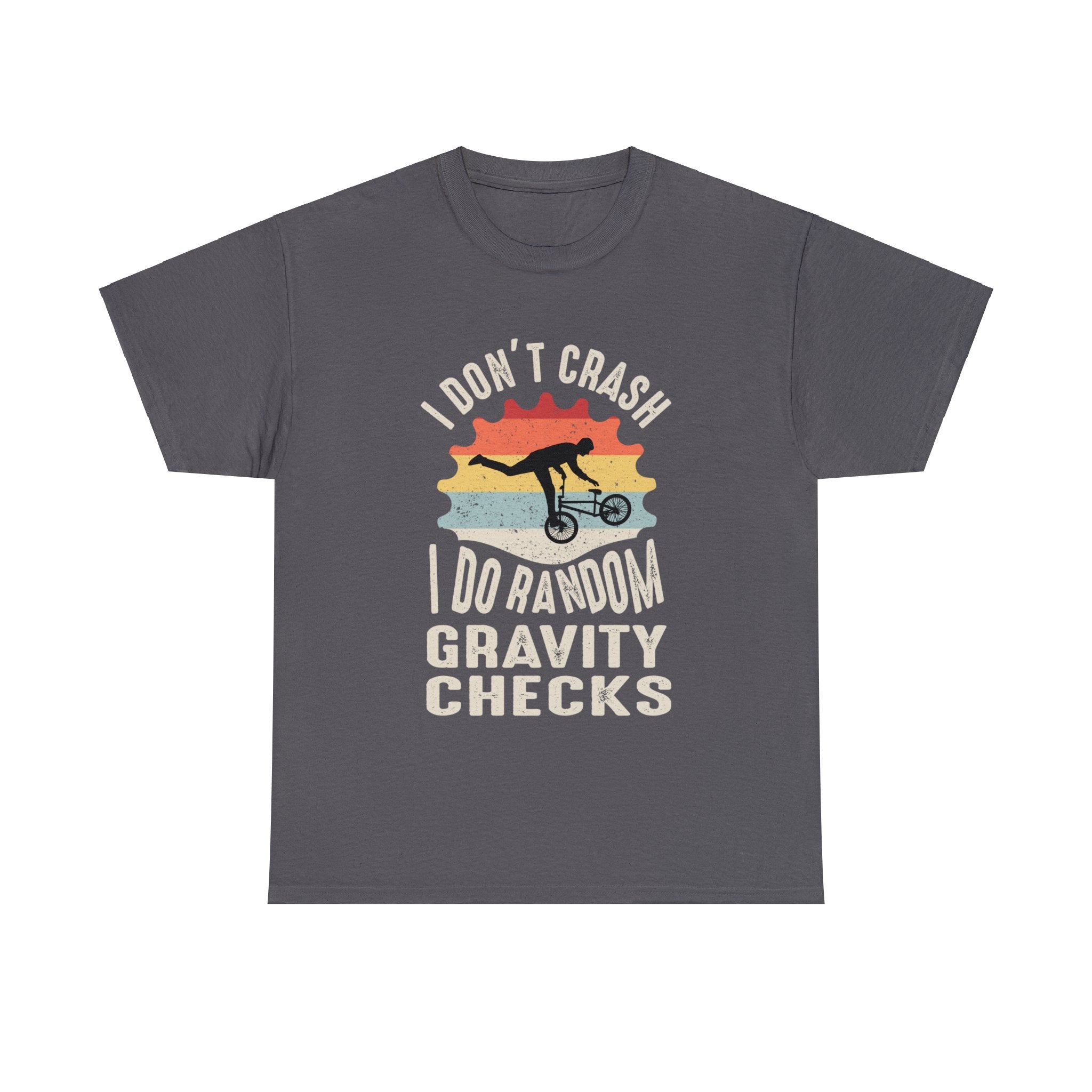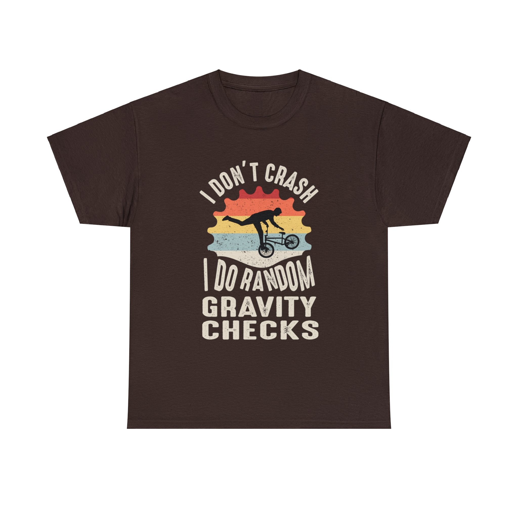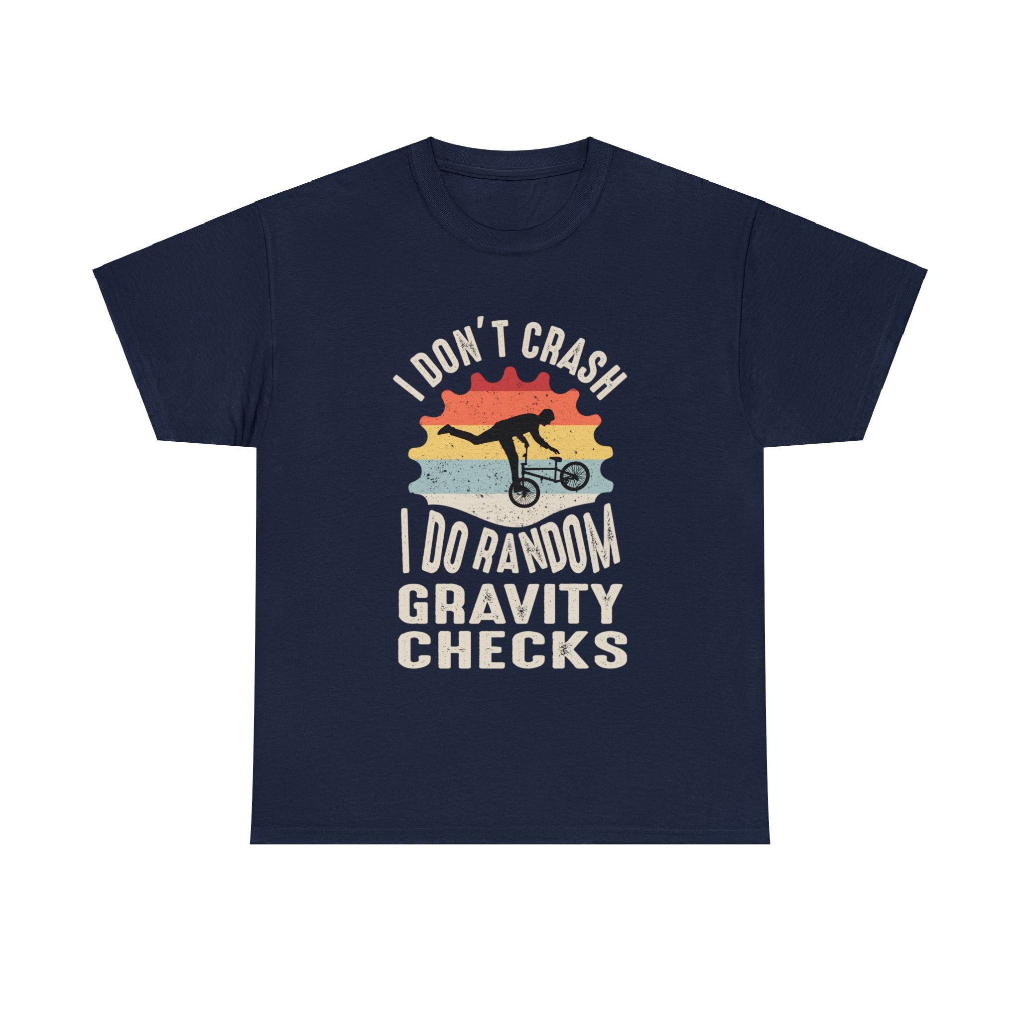 Add a touch of lightheartedness to your cycling adventures with this witty "I Don't Crash, I Do Random Gravity Checks T-Shirt." This tee pokes fun at the occasional mishaps that come with cycling, making it a great conversation starter among fellow riders. The playful design adds a dash of humor to any cycling adventure, reminding you to embrace the unexpected and laugh at yourself along the way. Crafted from soft cotton, this T-Shirt is comfortable for any ride.