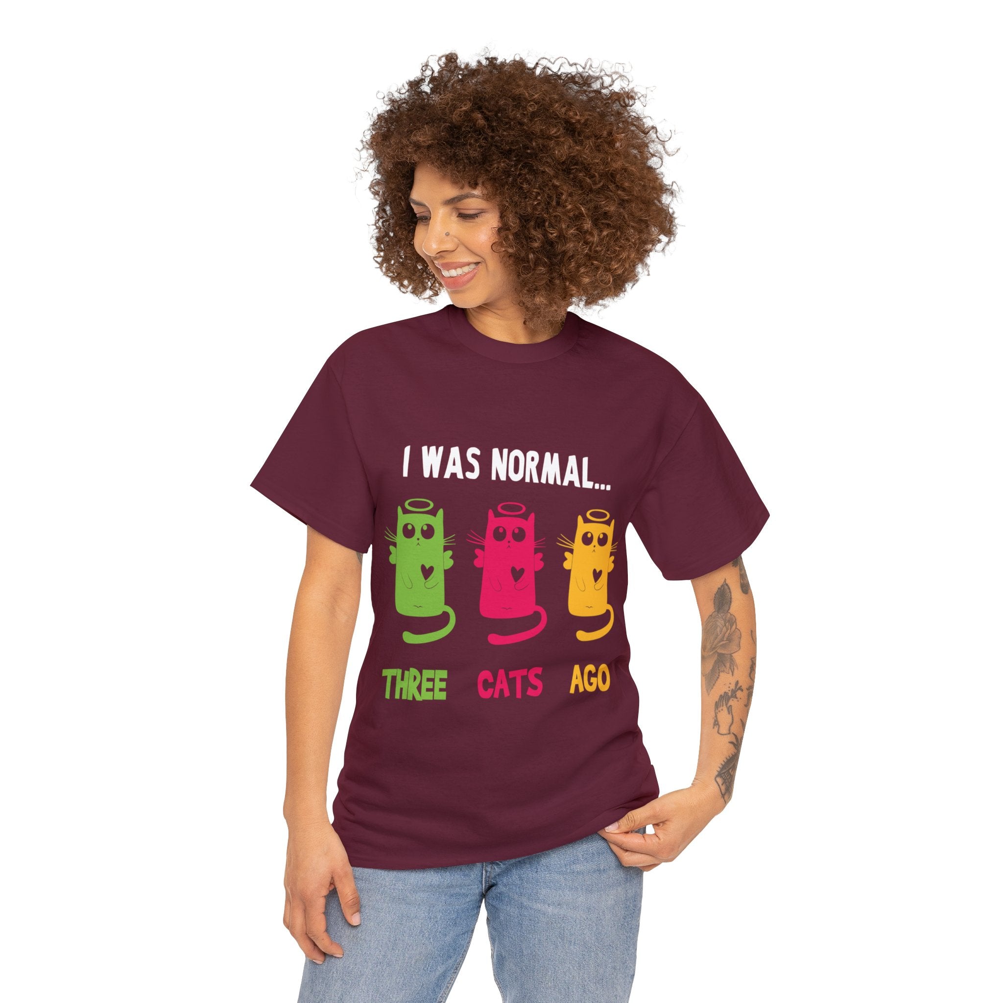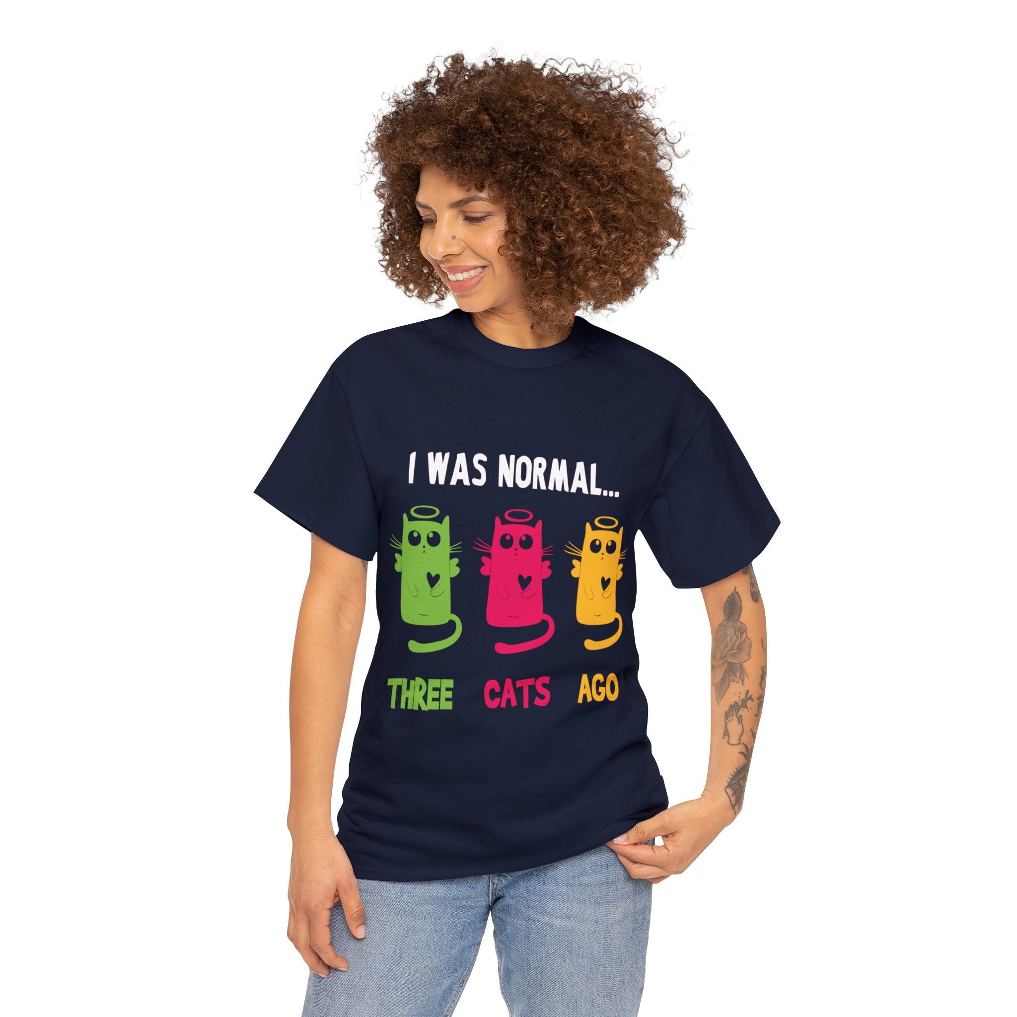 Embrace your journey from 'normal' to proud ''crazy cat person'' status with our ''I Was Normal, Three Cats Ago T-Shi...