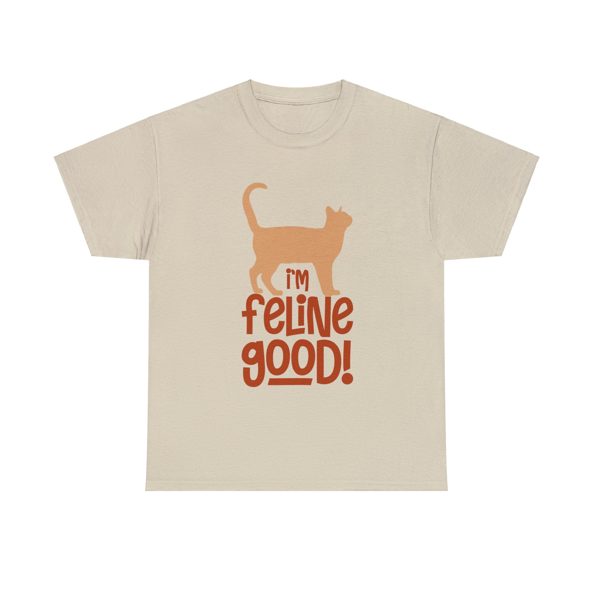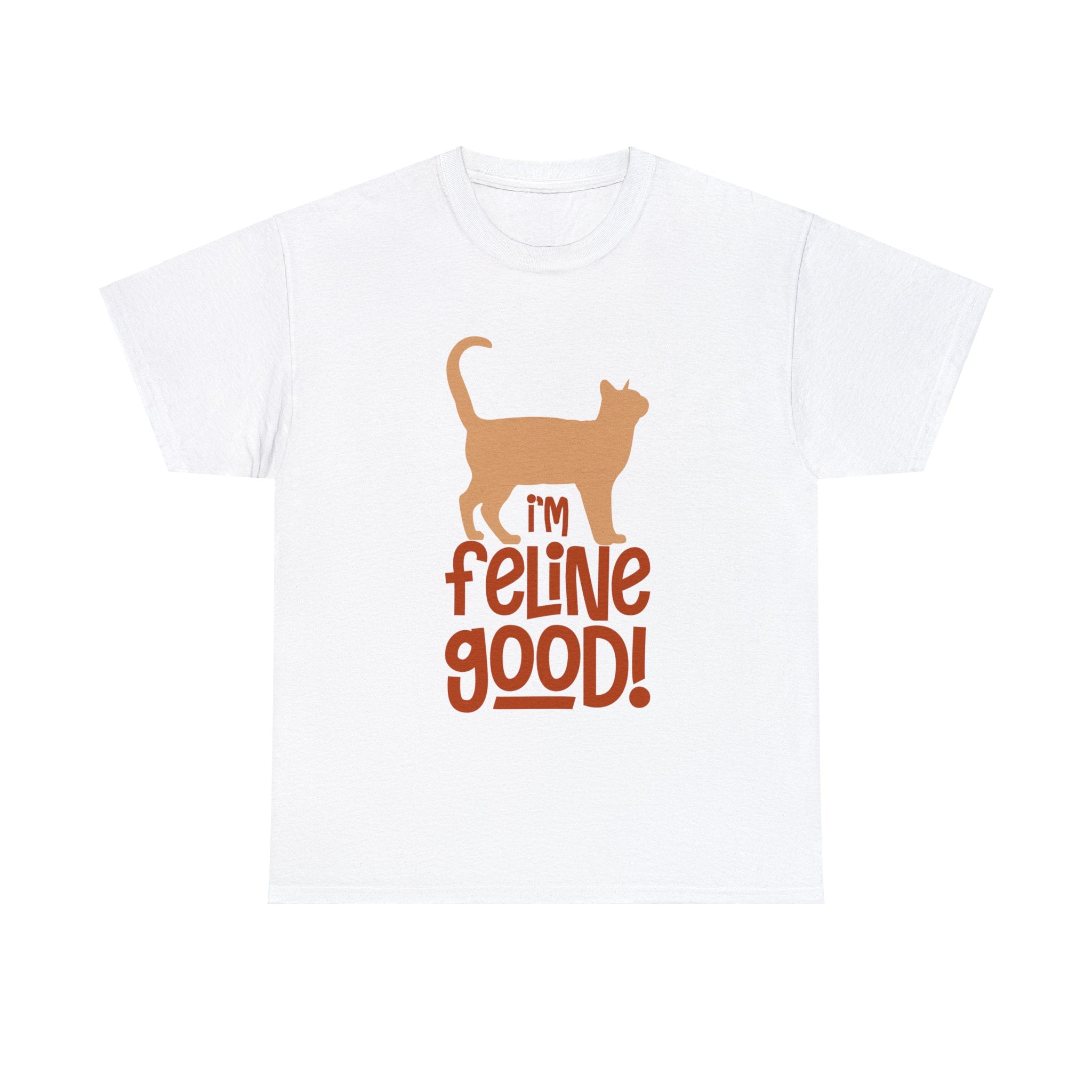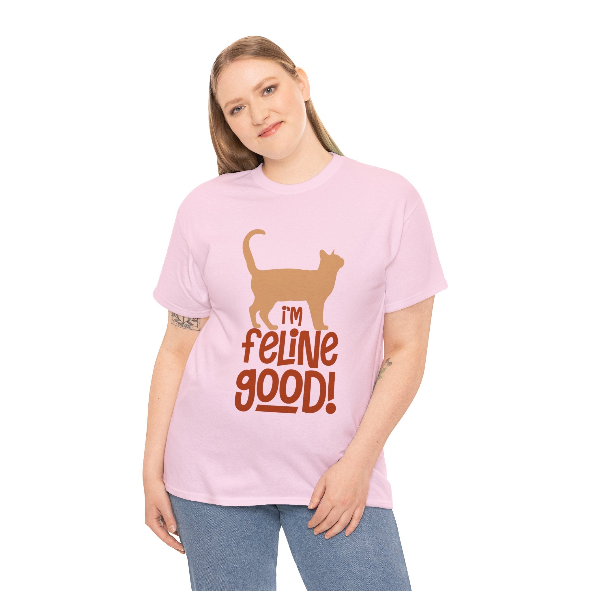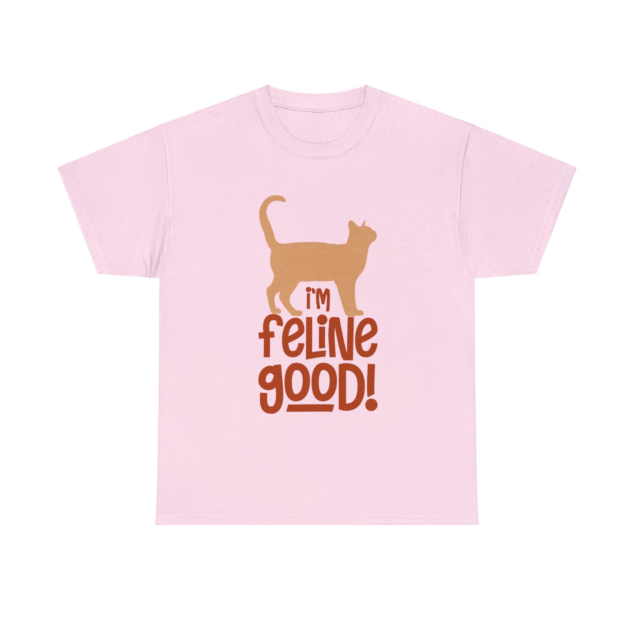 Get ready to unleash your inner cat spirit with our ''I'm Feline Good T-Shirt.'' This isn't just an ordinary tee; it's a portal to pure purrfection. Designed for both comfort and style, it's your canvas for expressing your playful side. As you wear this shirt, let it purr-suade the world that you're feeling pawsitively fantastic, spreading joy like a cat soaking up the sun.