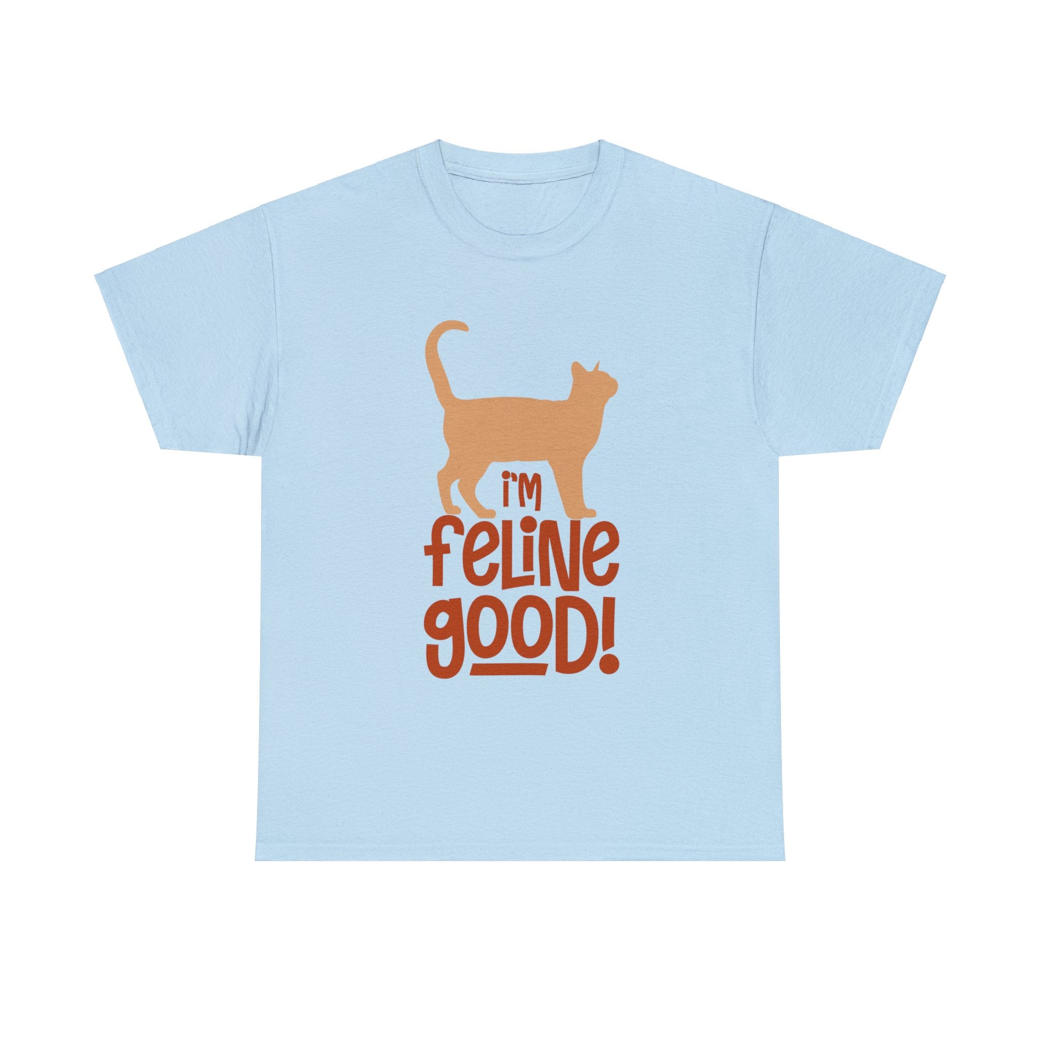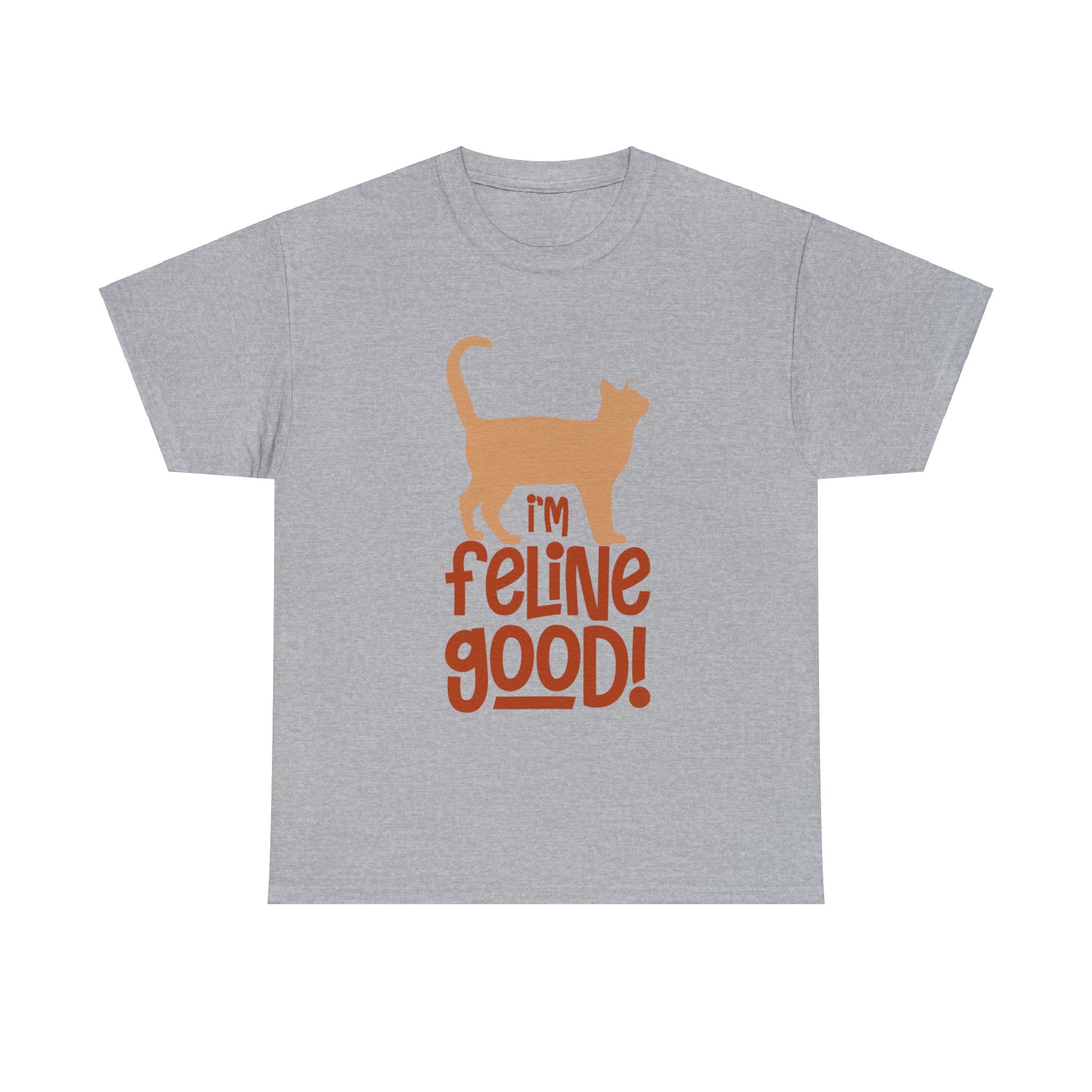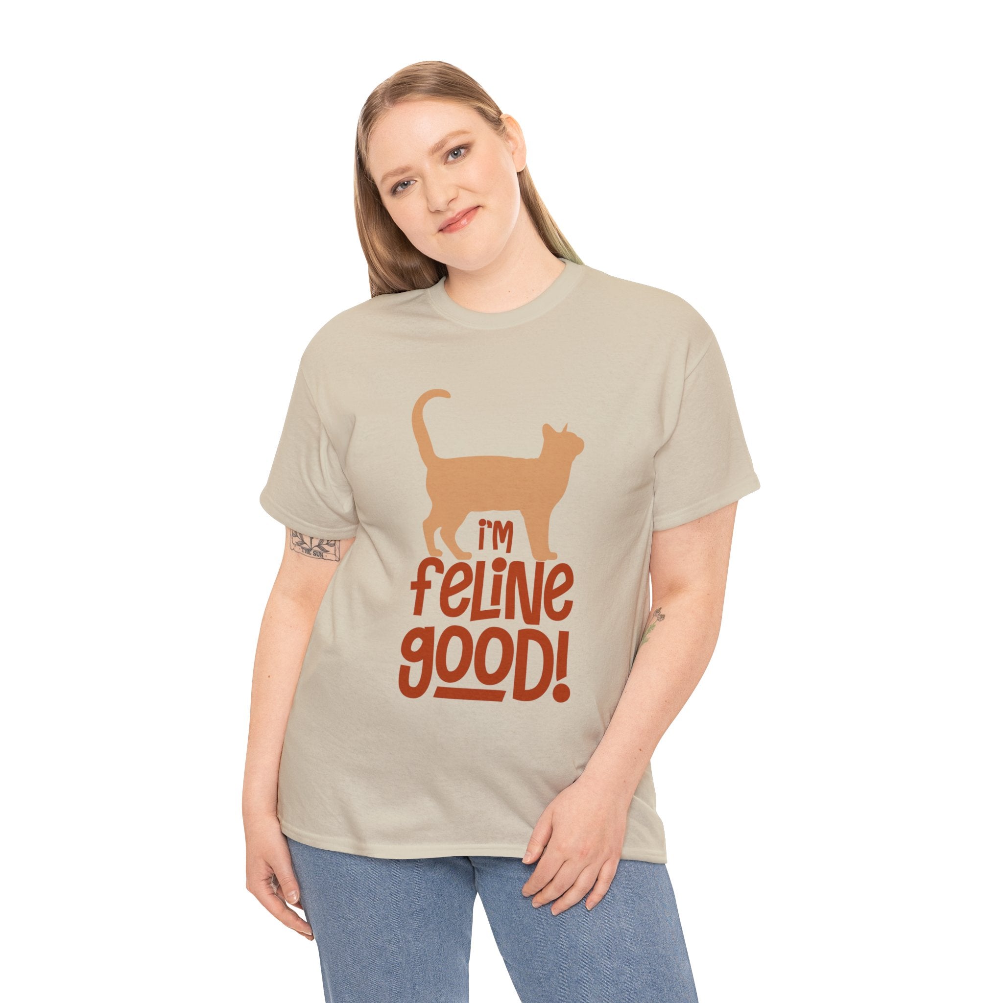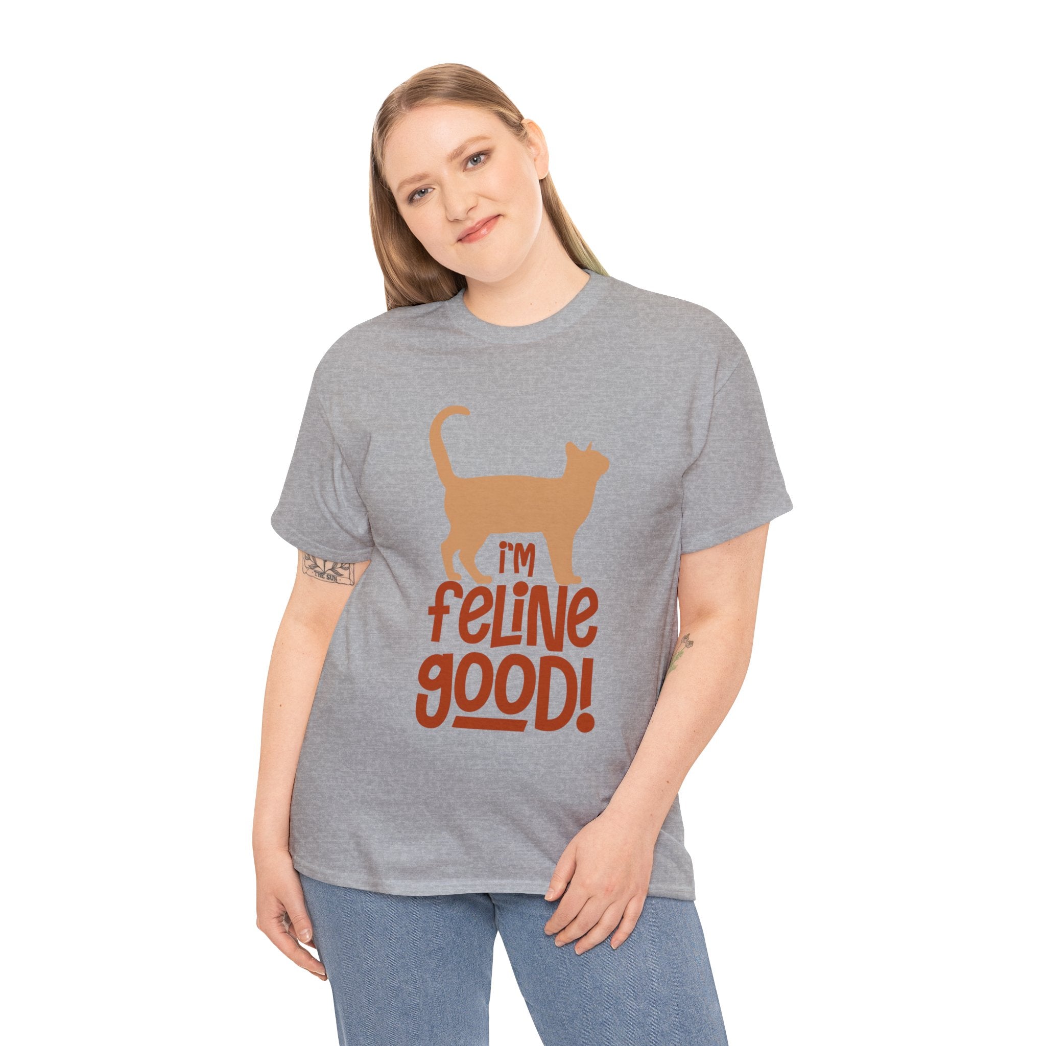 Get ready to unleash your inner cat spirit with our ''I'm Feline Good T-Shirt.'' This isn't just an ordinary tee; it's a portal to pure purrfection. Designed for both comfort and style, it's your canvas for expressing your playful side. As you wear this shirt, let it purr-suade the world that you're feeling pawsitively fantastic, spreading joy like a cat soaking up the sun.