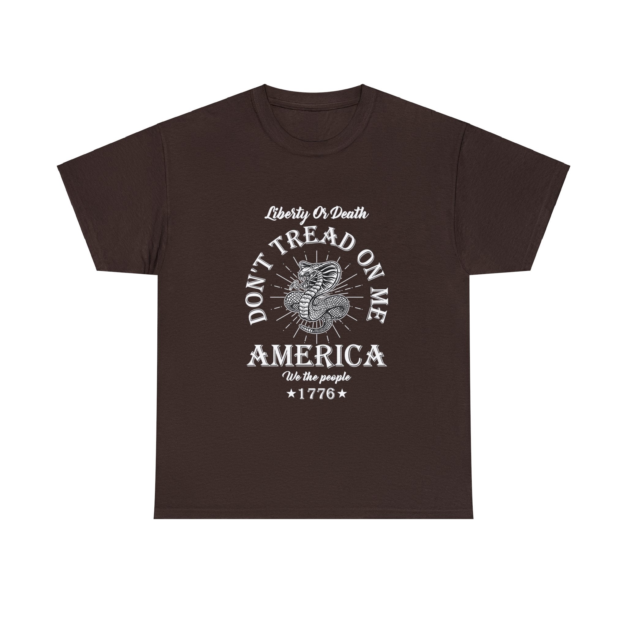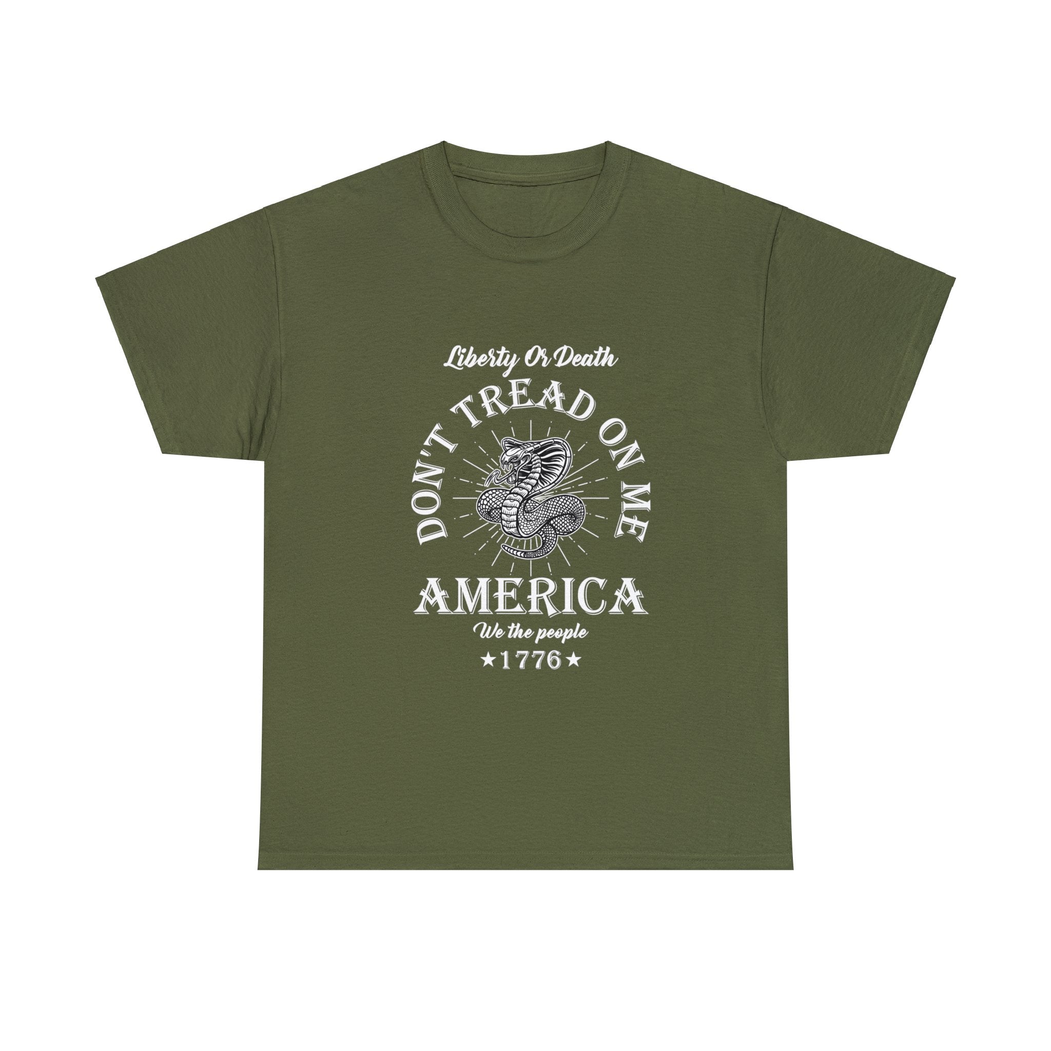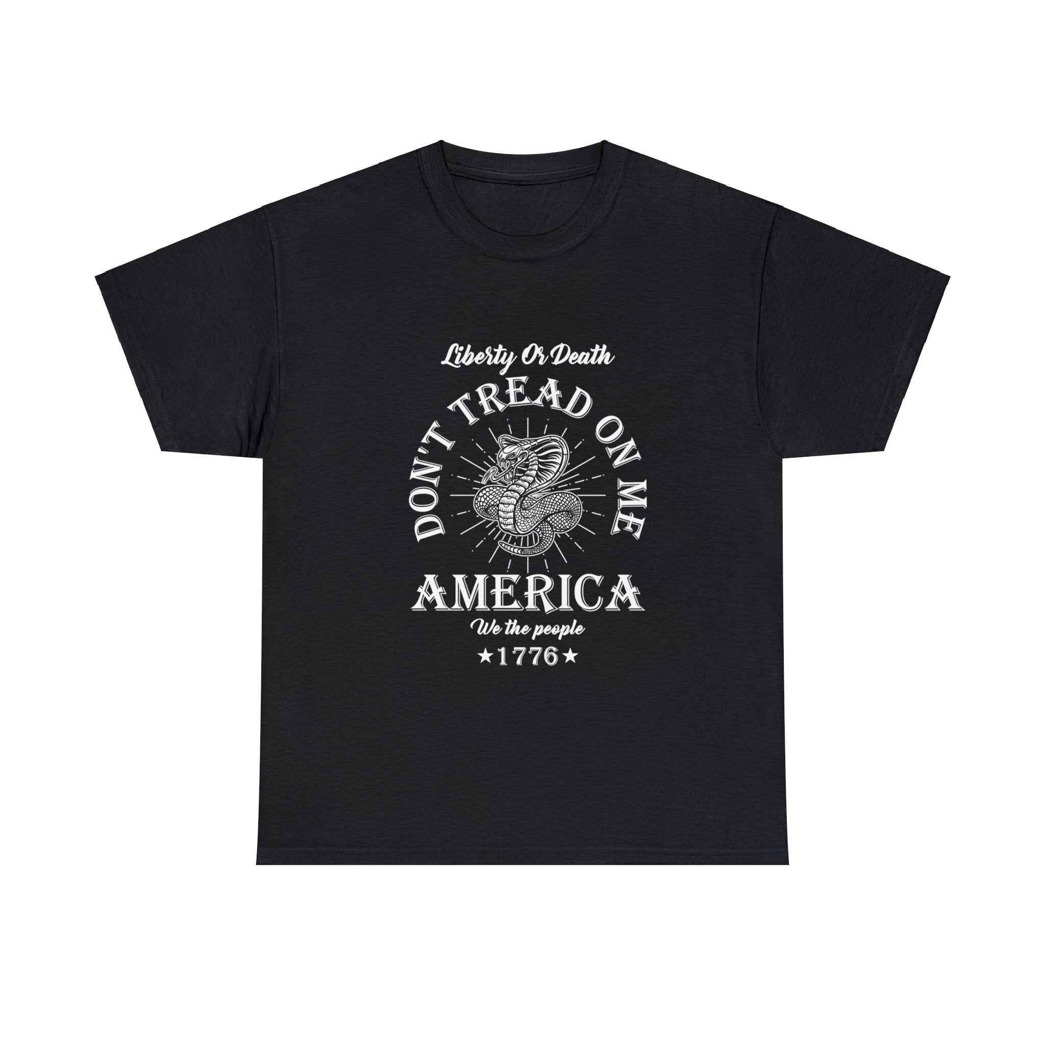 Paint rebellion across your wardrobe canvas with our "Liberty or Death, Don't Tread On Me T-Shirt"—an avant-garde cho...