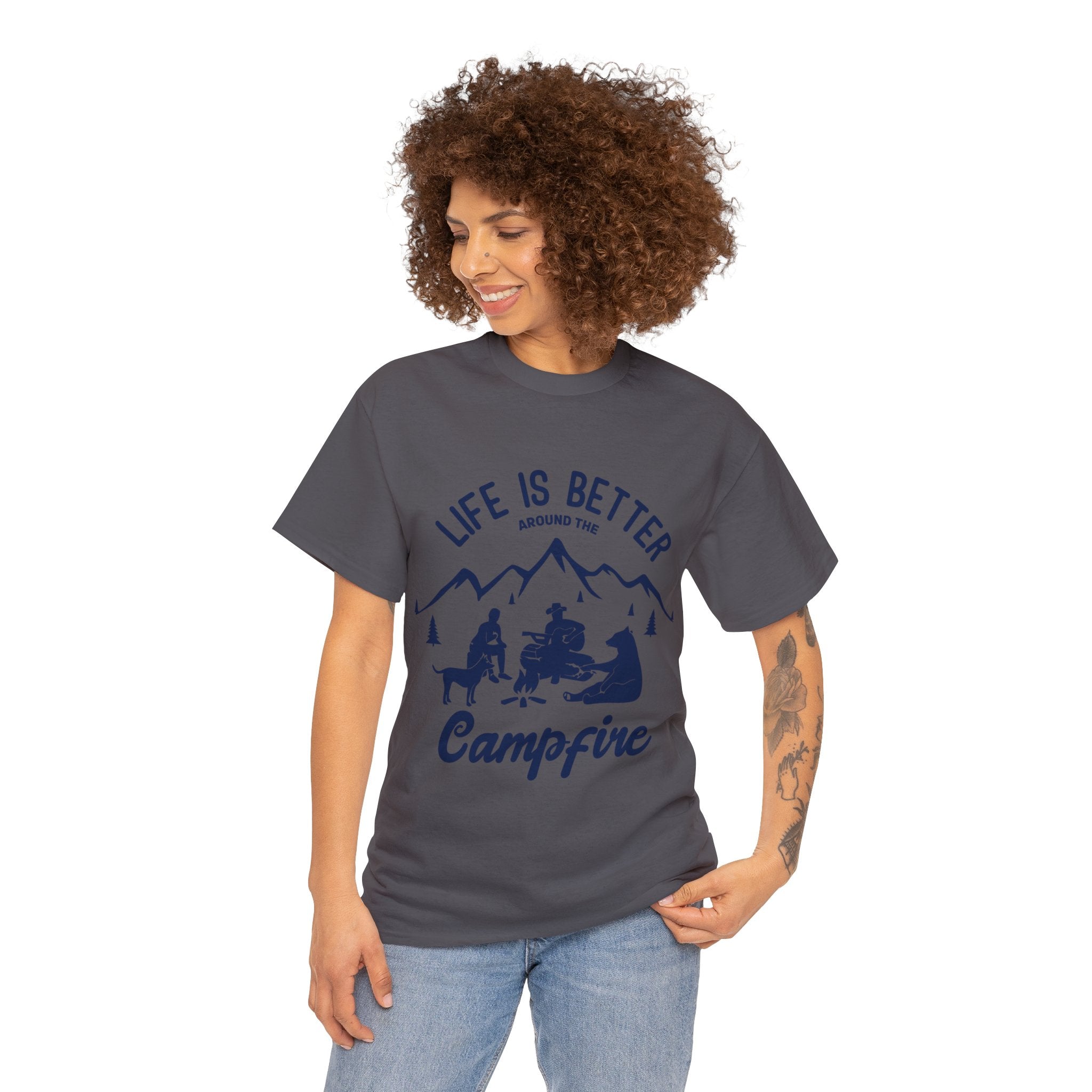Life truly is better around the campfire, and our T-shirt proves it! It's for those who know the magic of gathering 'round the flames, sharing stories, and making memories. With a playful nod to the warmth of campfire camaraderie, this tee is more than clothing; it's a lighthearted celebration of the simple joys that make life so special.