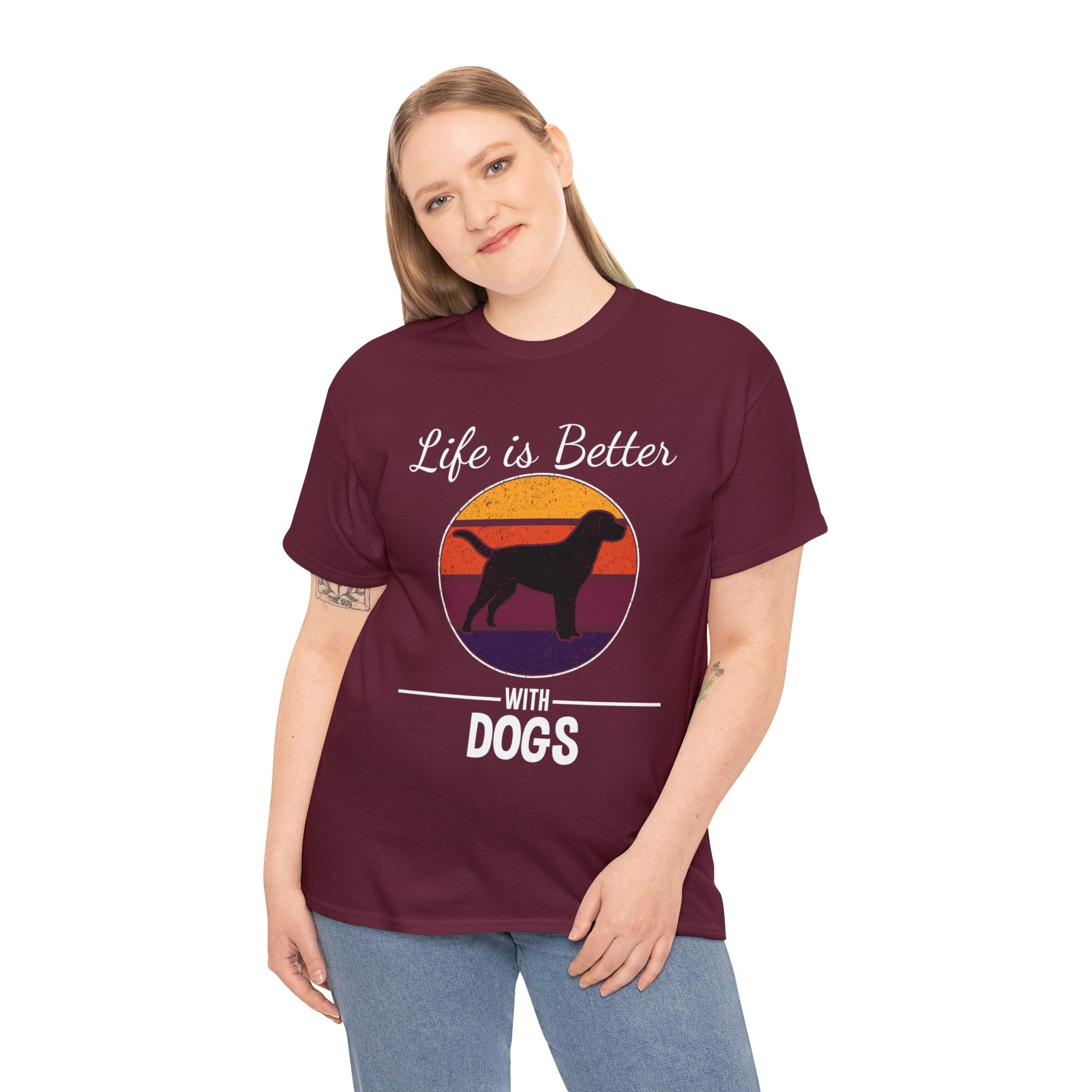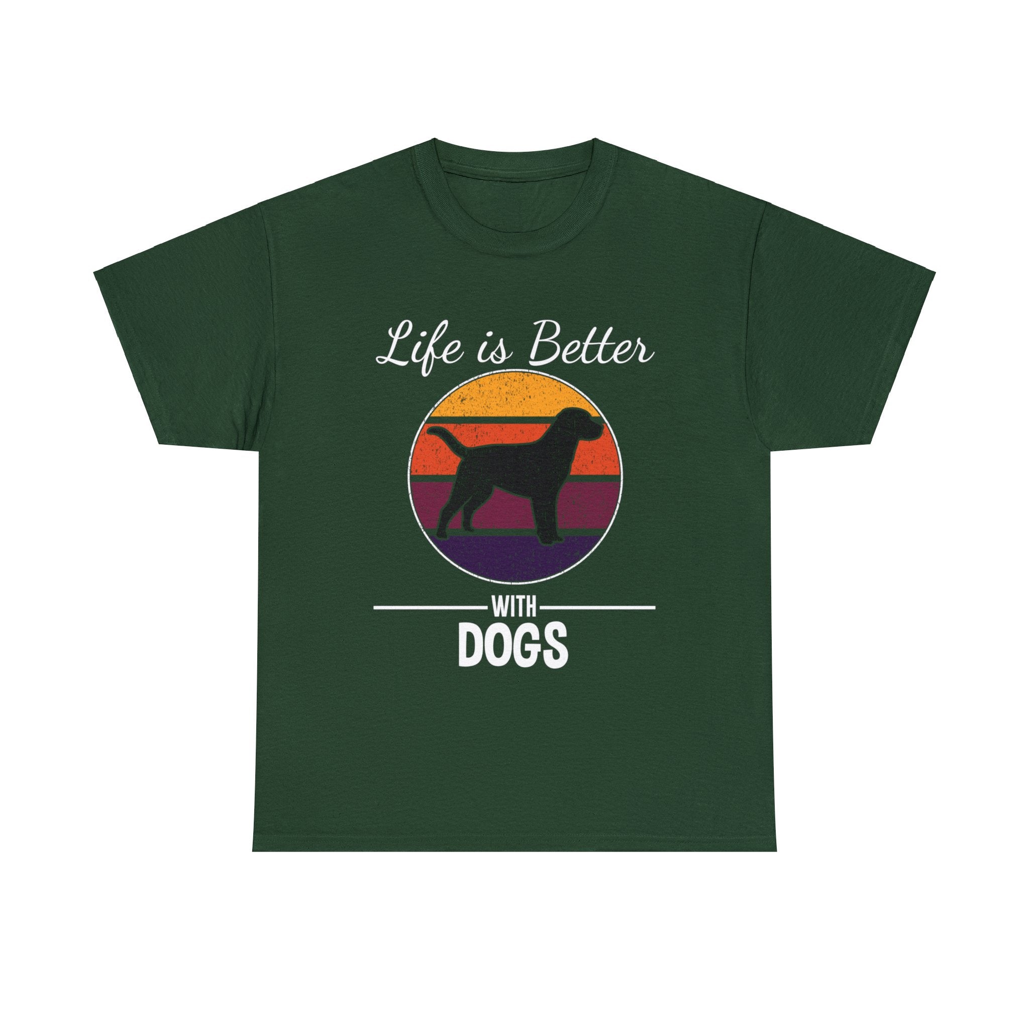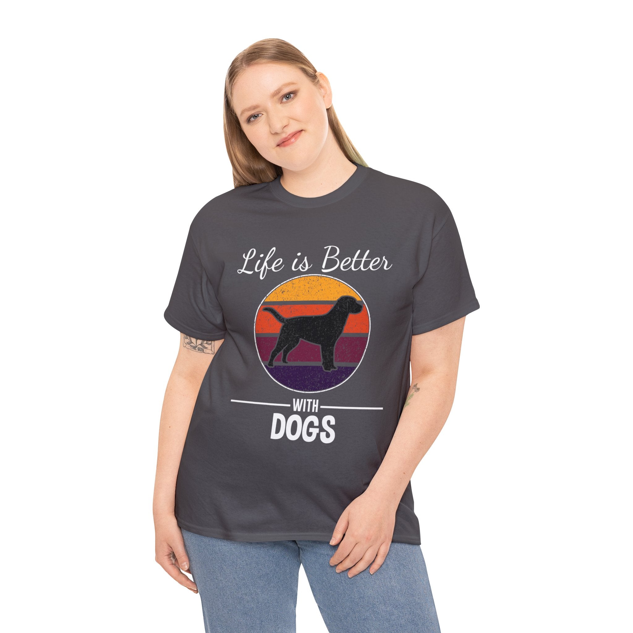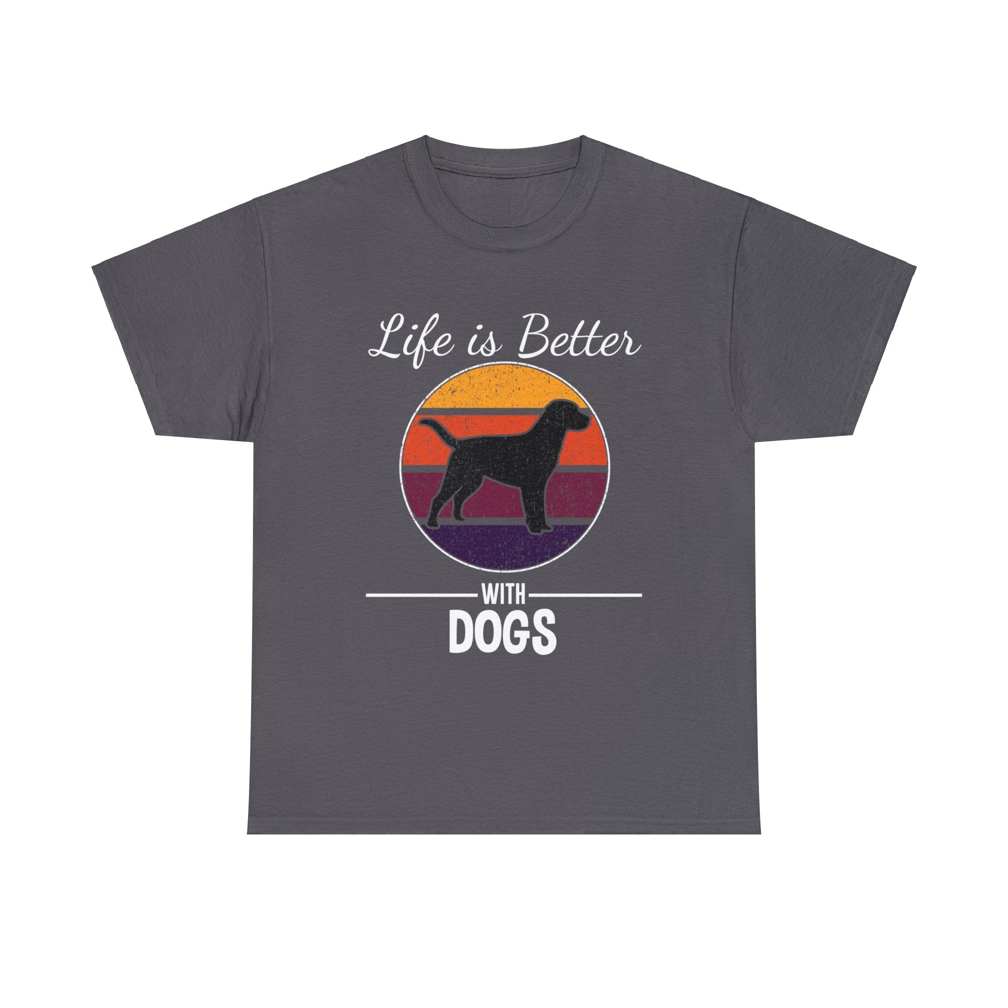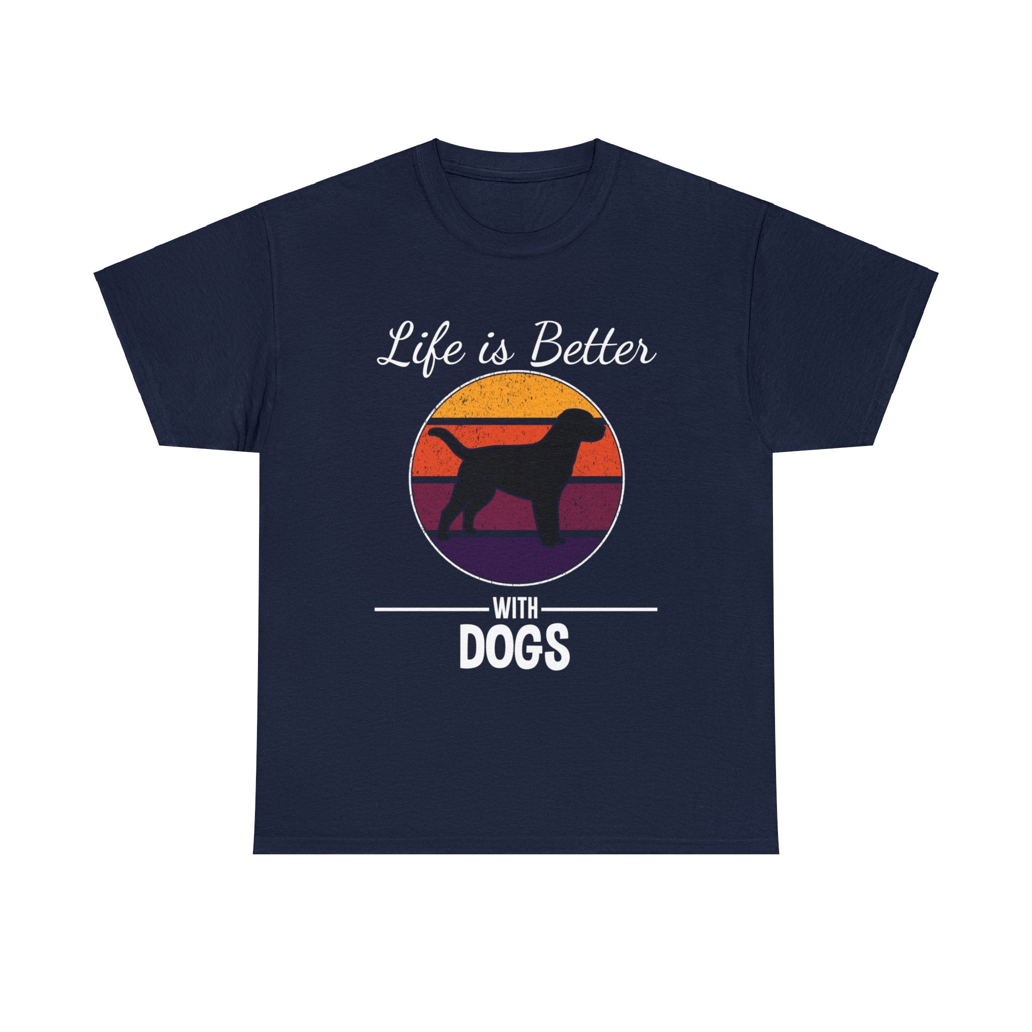 The "Life Is Better With Dogs T-Shirt" is a delightful celebration of the joy and fulfillment that dogs bring into our lives. This shirt is designed for individuals who deeply understand and value the unique connection between people and their canine companions. Whether you're a devoted dog owner, an advocate for pet adoption, or simply someone who finds comfort and happiness in the presence of dogs, this tee offers a way to openly express your affection. Its heartwarming design serves as a simple yet impactful declaration of your love for dogs and the immense positivity they bring to our daily existence. Beyond being just a piece of clothing, it's a statement of the profound and heartwarming bond that dogs create in our lives.