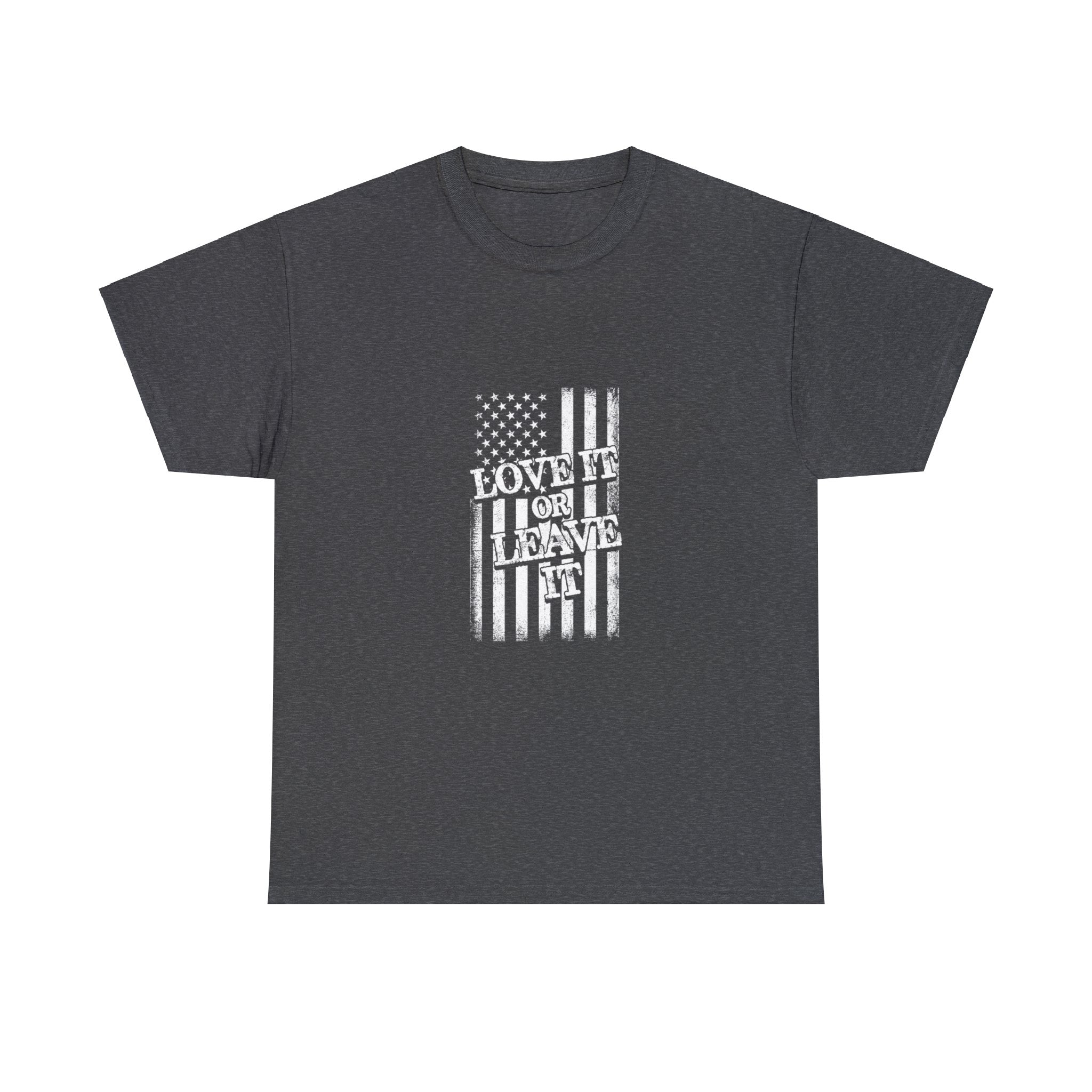 Adorn yourself with loyalty and unwavering commitment in our "Love it or Leave it T-Shirt"—a sartorial proclamation that extends beyond fabric. This is not just an article of clothing; it's a bold statement, declaring your allegiance to a nation that embraces love and loyalty. Envision it as a wearable manifesto, a visual testament to your unbreakable bond with a country that you proudly call home. Let every stitch weave the tale of your dedication to the land you cherish.