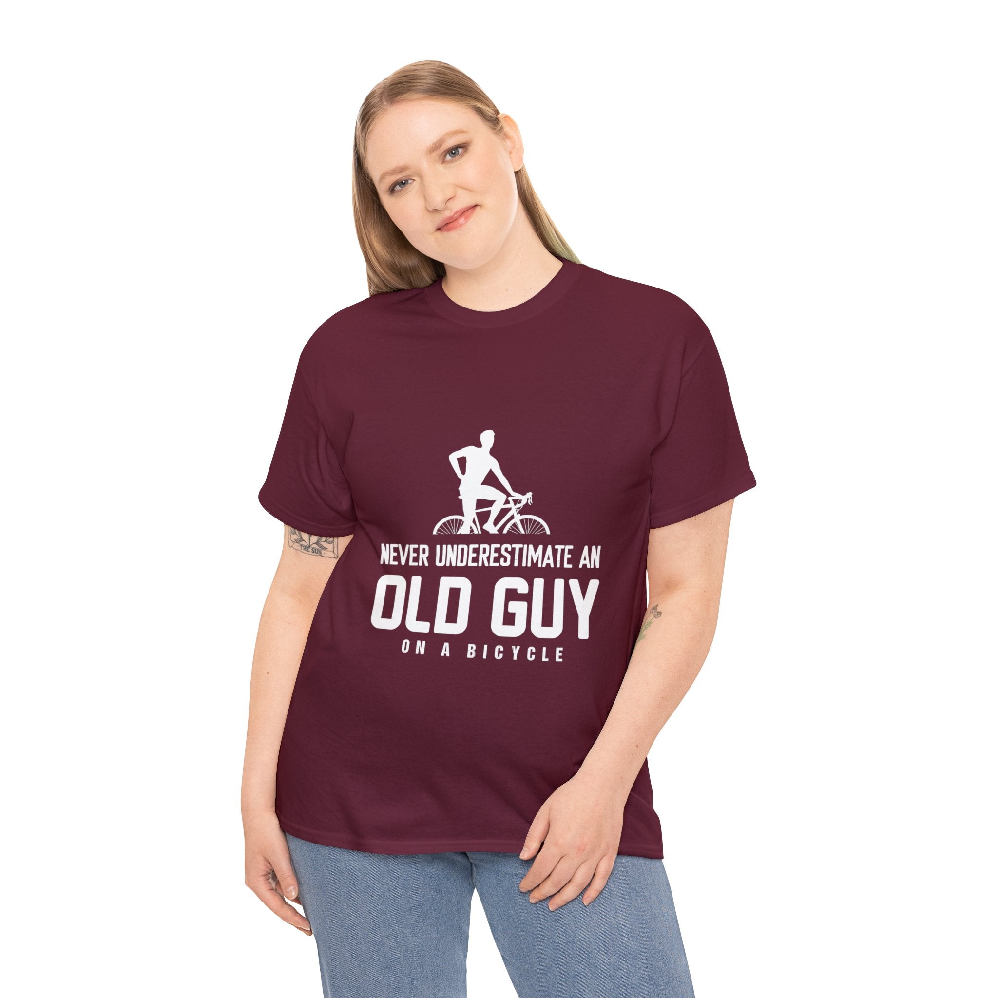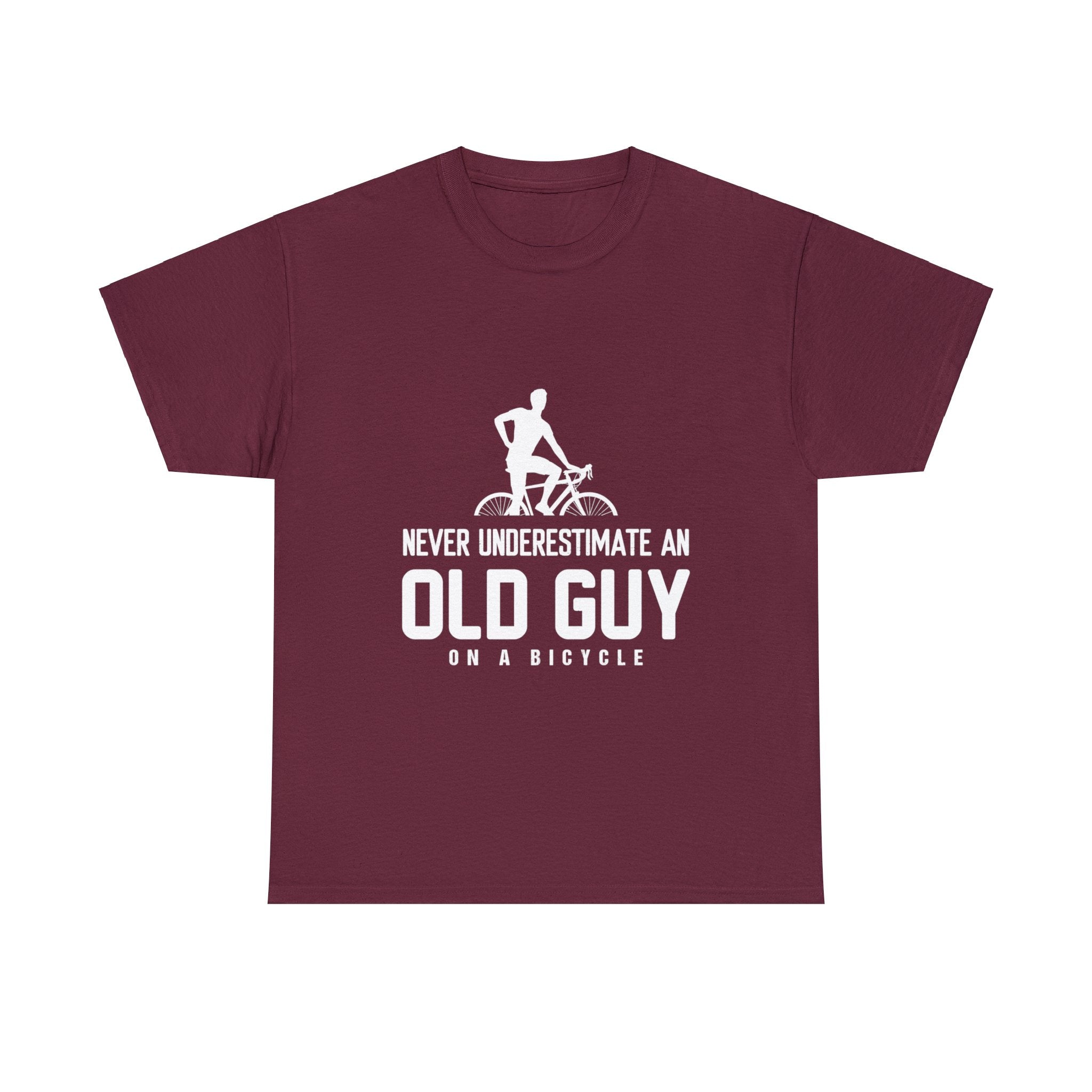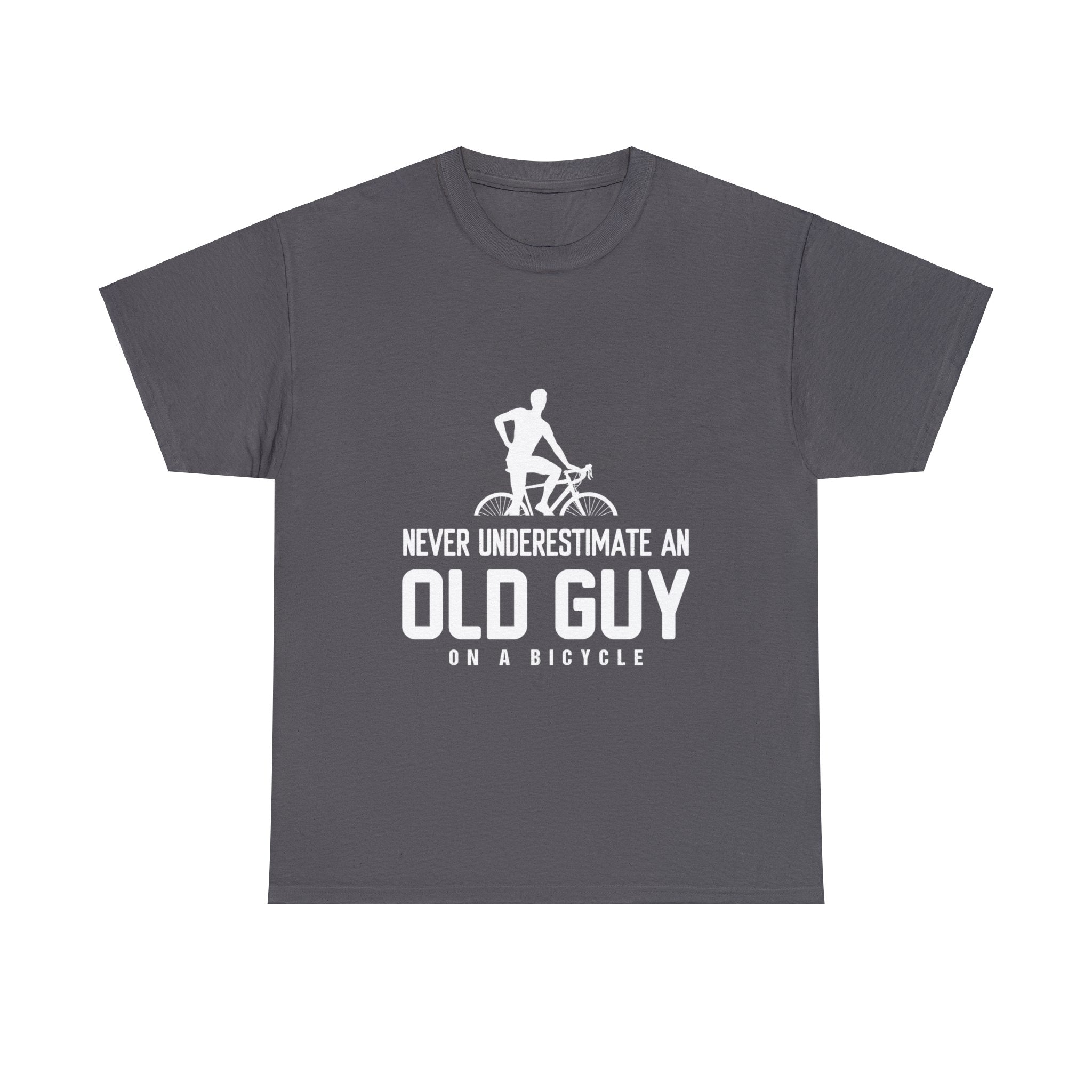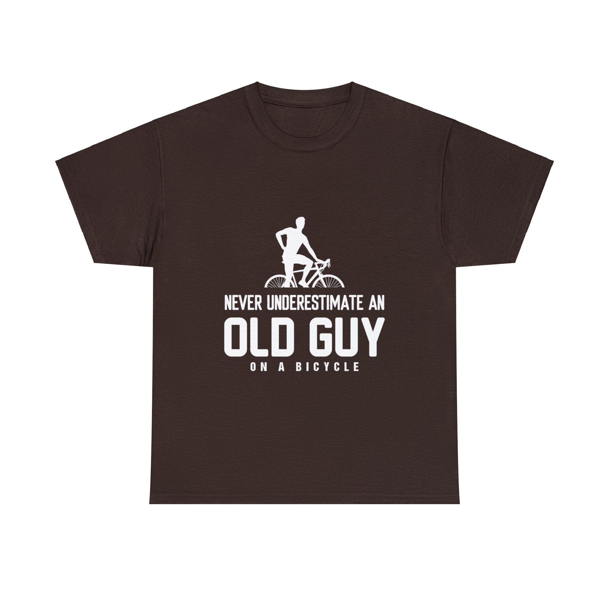 Experience and wisdom come with age, and this "Never Underestimate an Old Guy T-Shirt" is a testament to the enduring passion and skill of seasoned cyclists. Whether you're a veteran mountain biker still conquering the trails or a roadie slicing through the wind with years of experience, this tee is a badge of honor and a reminder that age is just a number. Made from soft cotton, this T-Shirt is comfortable for any ride.