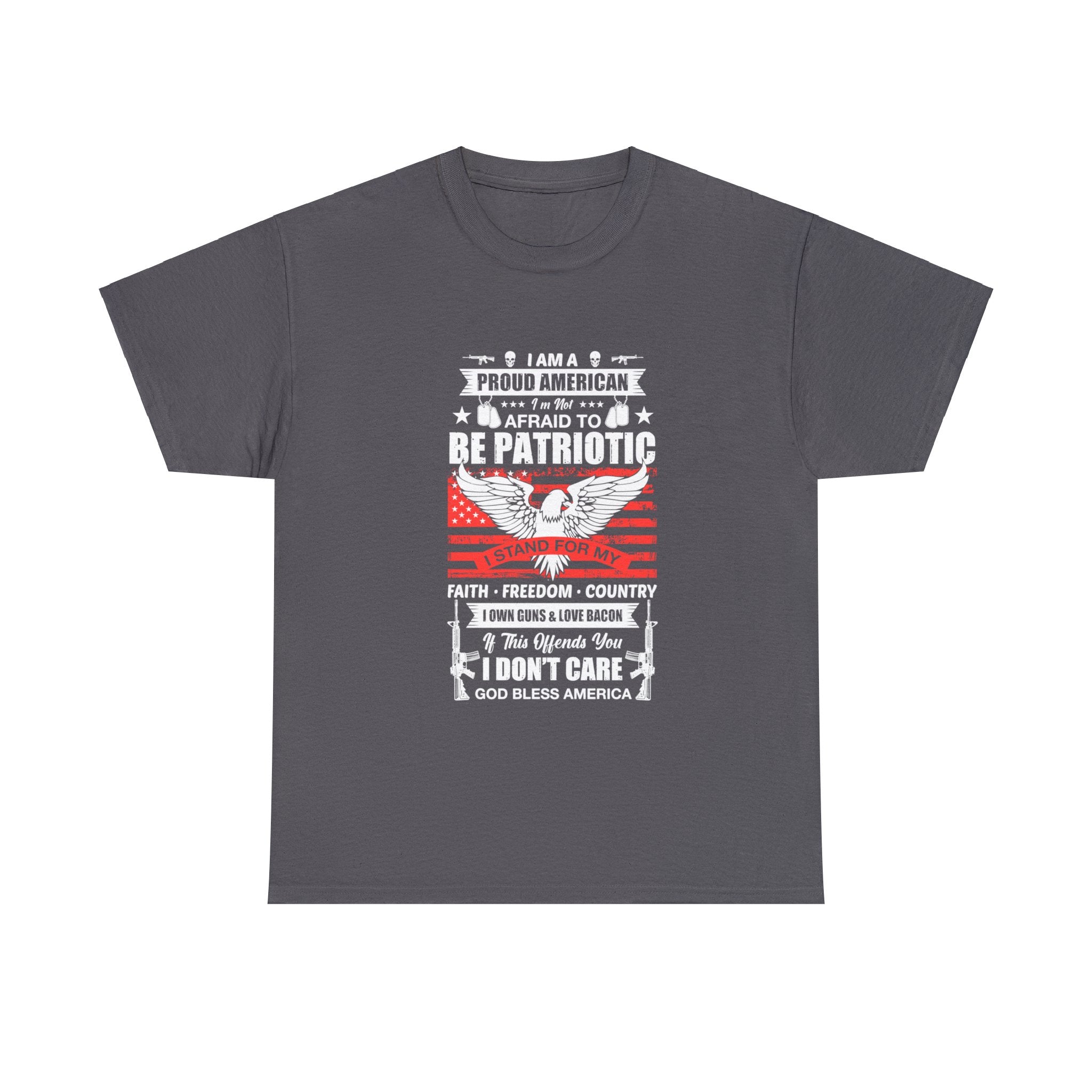 Introducing the "Proud American T-Shirt"—an emblem of unwavering allegiance to the land of the free and the home of the brave. This is not just an article of clothing; it's a wearable testament to your pride in being an American. The design, a vivid celebration of Americana, goes beyond aesthetics, echoing the values that define the heart of a patriot. Don the Proud American T-Shirt with honor, and let your style resonate with the timeless anthem of liberty—a garment that speaks volumes about your dedication to the red, white, and blue.