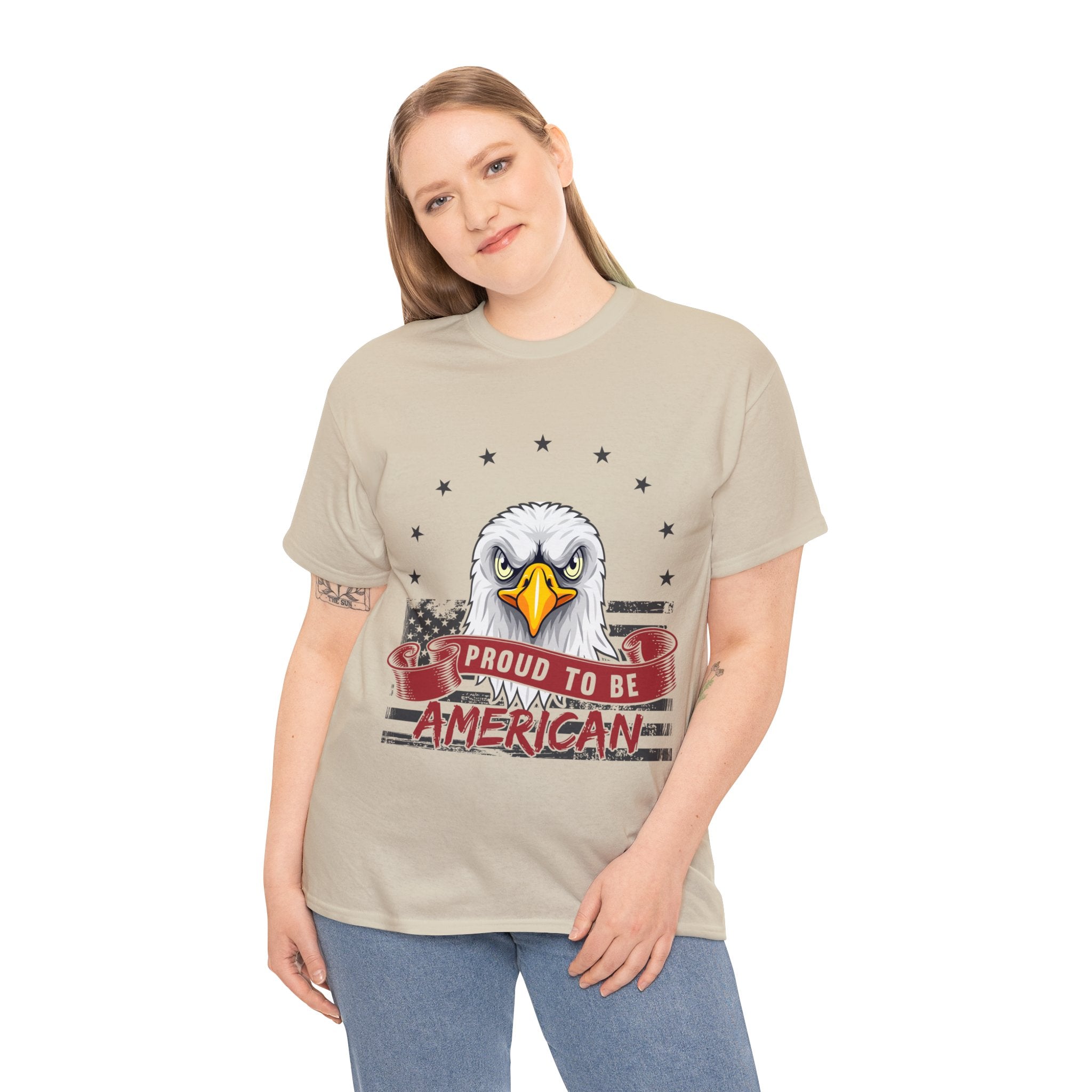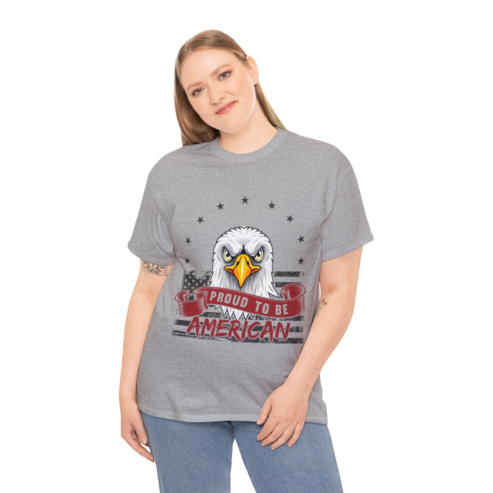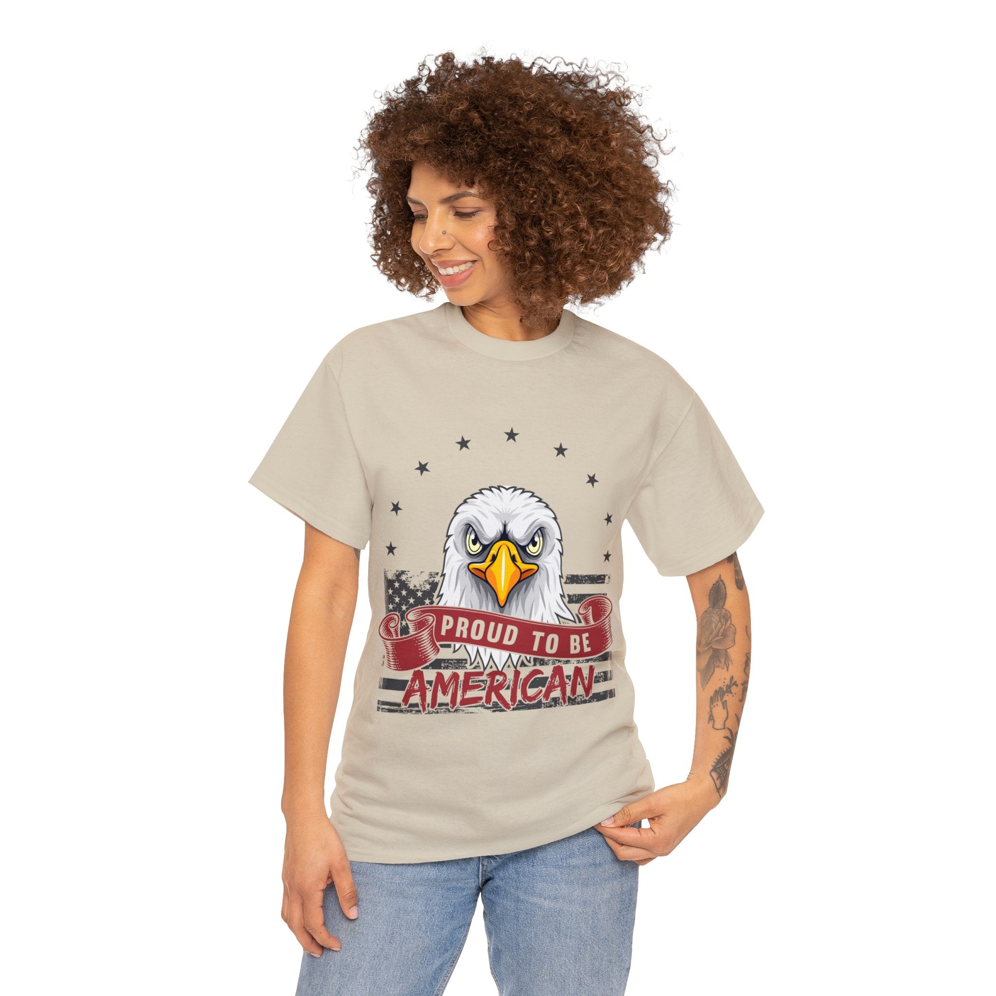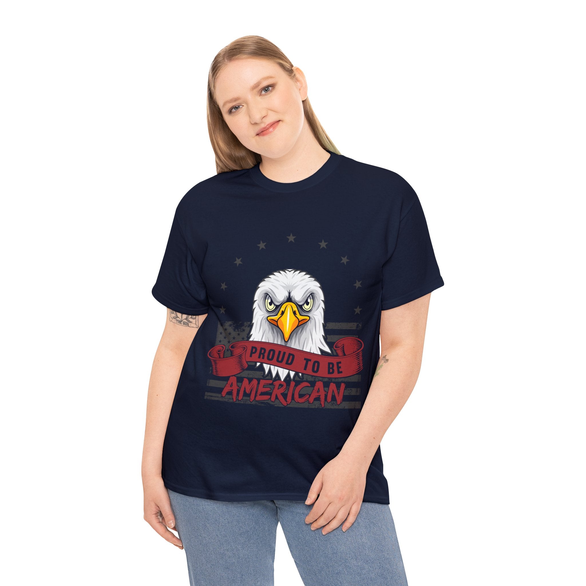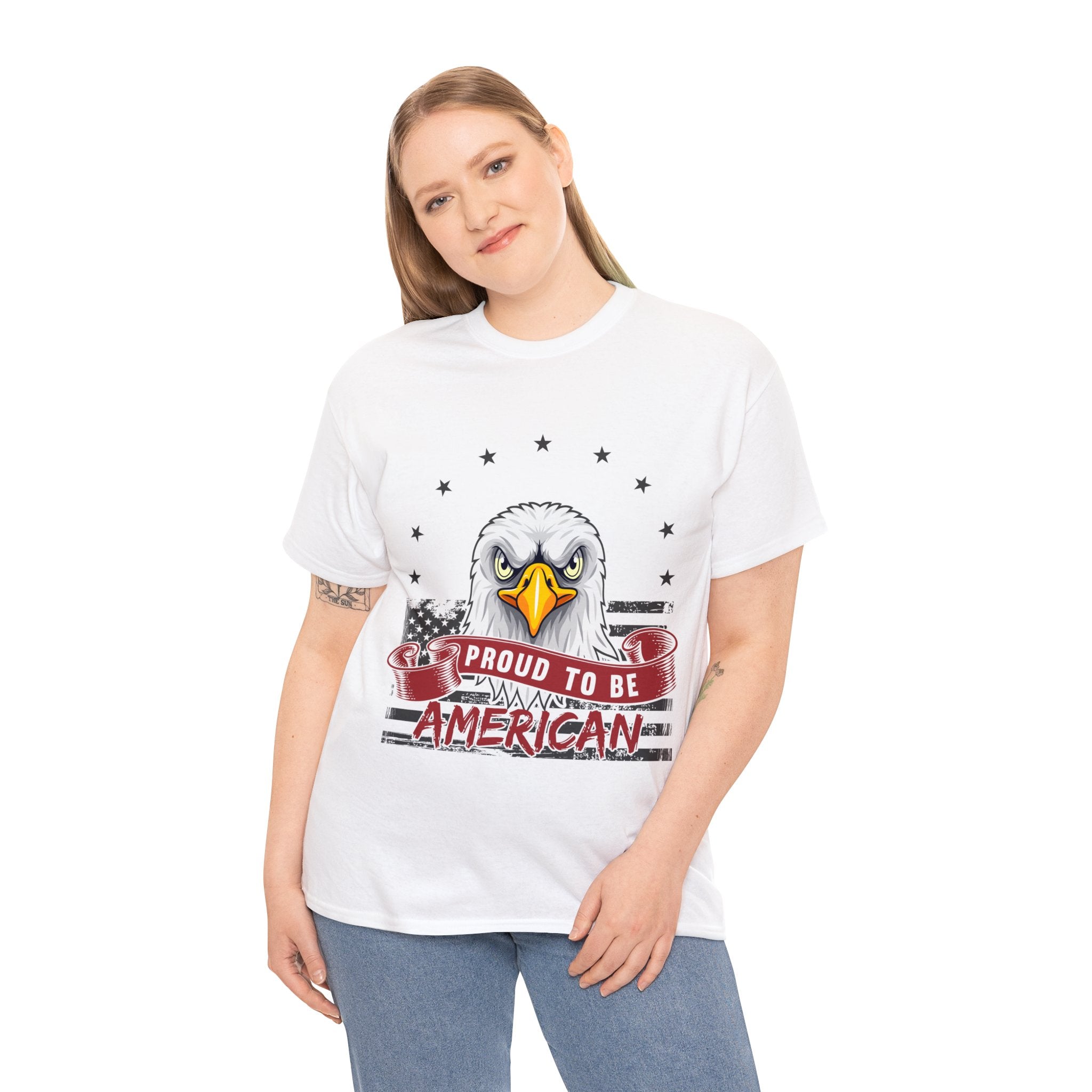 Declare your identity with pride in our "Proud to Be American T-Shirt"—an empowering addition to your wardrobe. This isn't just an article of clothing; it's a wearable proclamation of your deep-rooted pride in being part of the red, white, and blue. The design, a striking fusion of visuals, captures the very essence of what it means to be an American. Wear it boldly, wear it proudly, and let your style become a loud, unapologetic shoutout to your allegiance—a garment that reflects your commitment to the ideals that define this great nation.