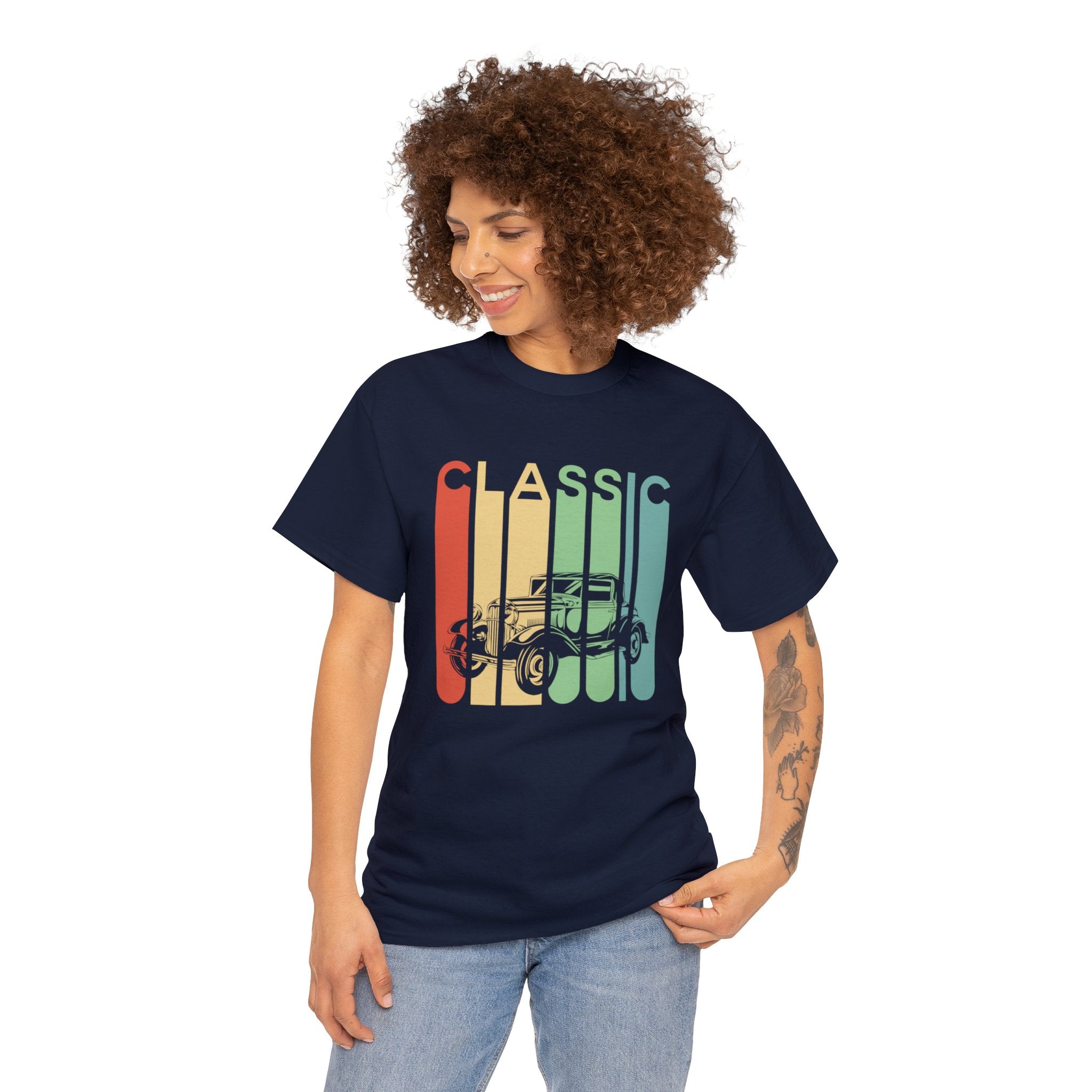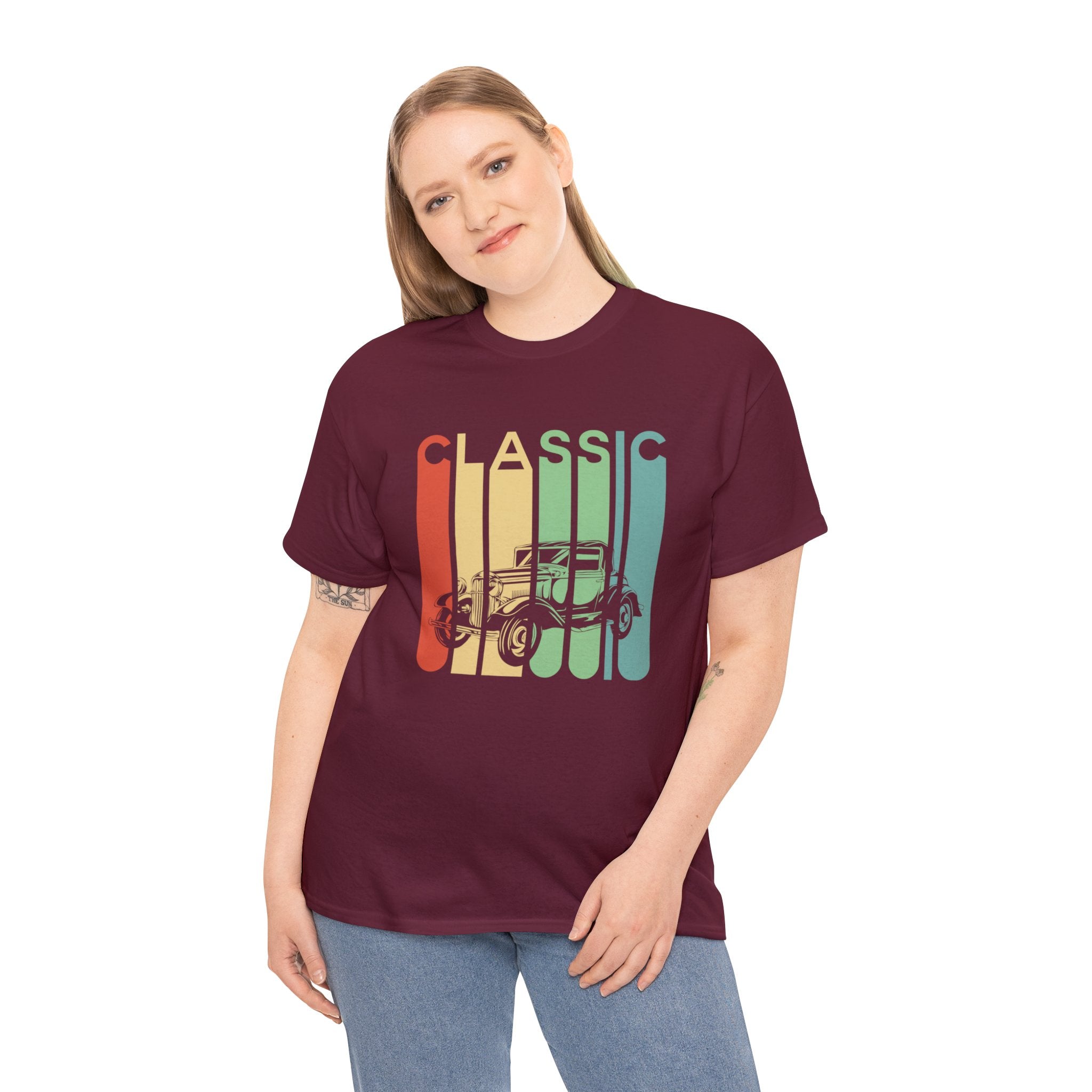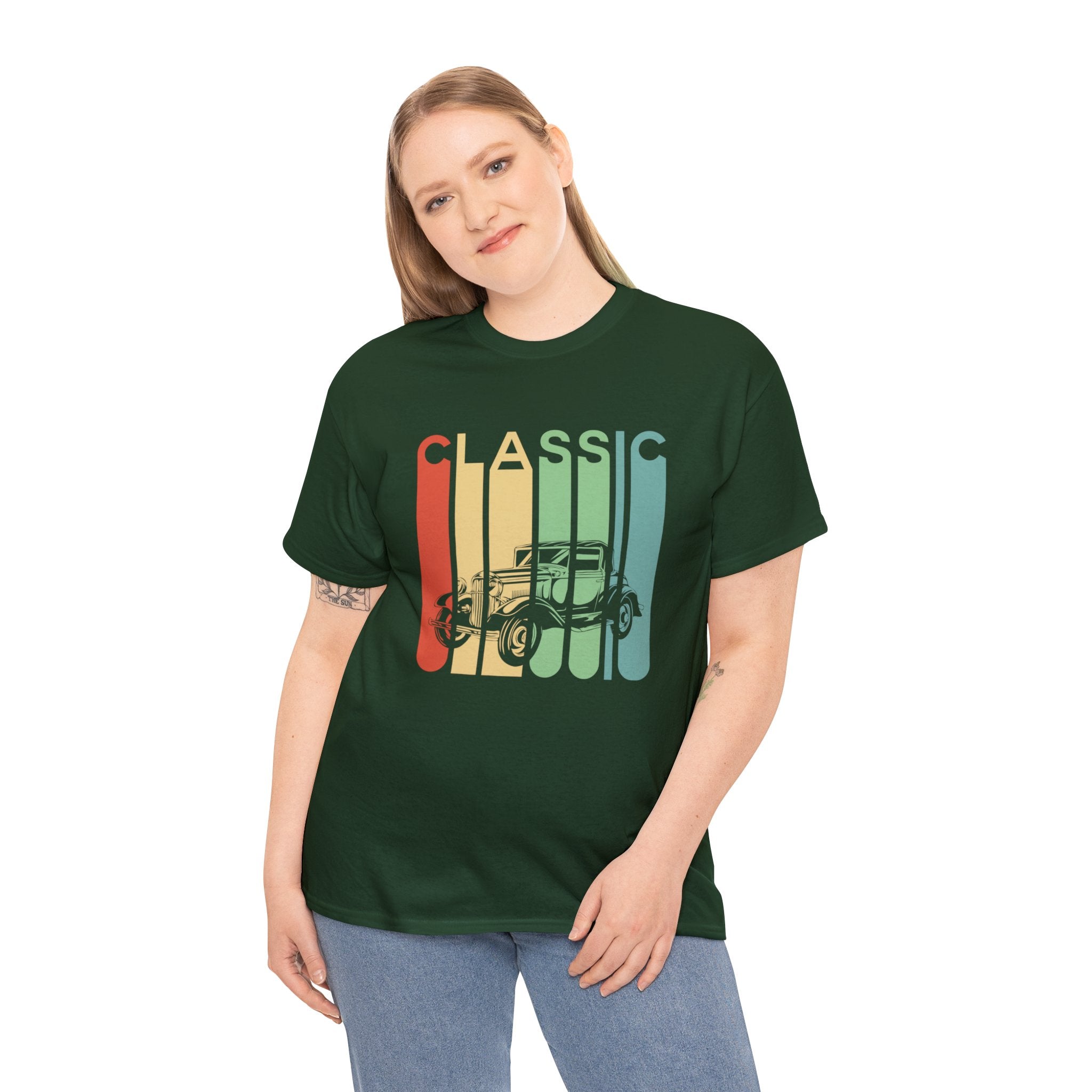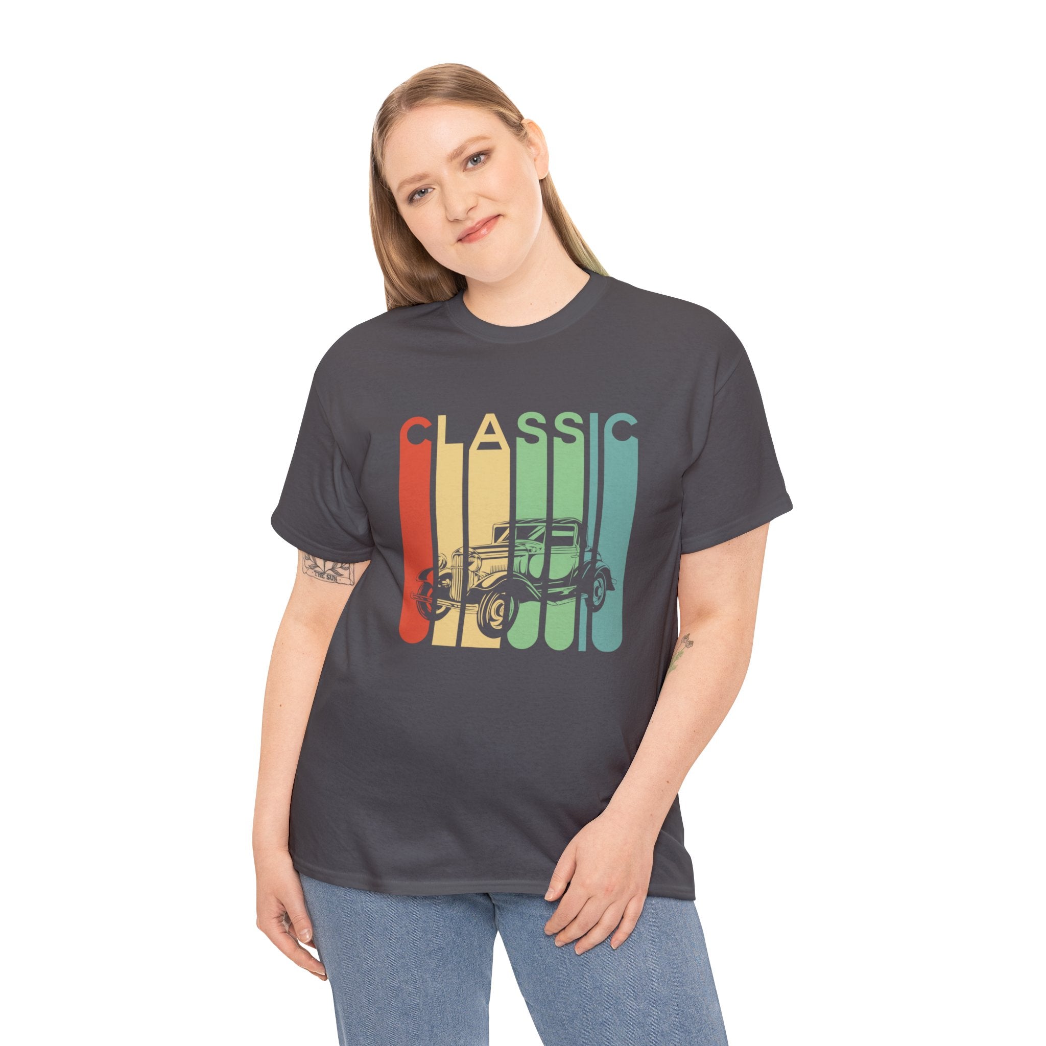 The "Rainbow Classic Vintage T-Shirt" is a vibrant homage to the bygone era of classic automobiles that exuded style and flair. This shirt is designed for vintage car enthusiasts who appreciate the colorful and retro designs that adorn these vehicles. Whether you're a classic car aficionado, a fan of the bold aesthetics of vintage automobiles, or someone who enjoys the nostalgia and eye-catching appeal of these classics, this tee allows you to express your admiration for the stylish and colorful cars of the past. It captures the essence of a time when automotive design was a blend of classic charm and vibrant aesthetics, making it a fashionable addition to your wardrobe that evokes the spirit of vintage cars.