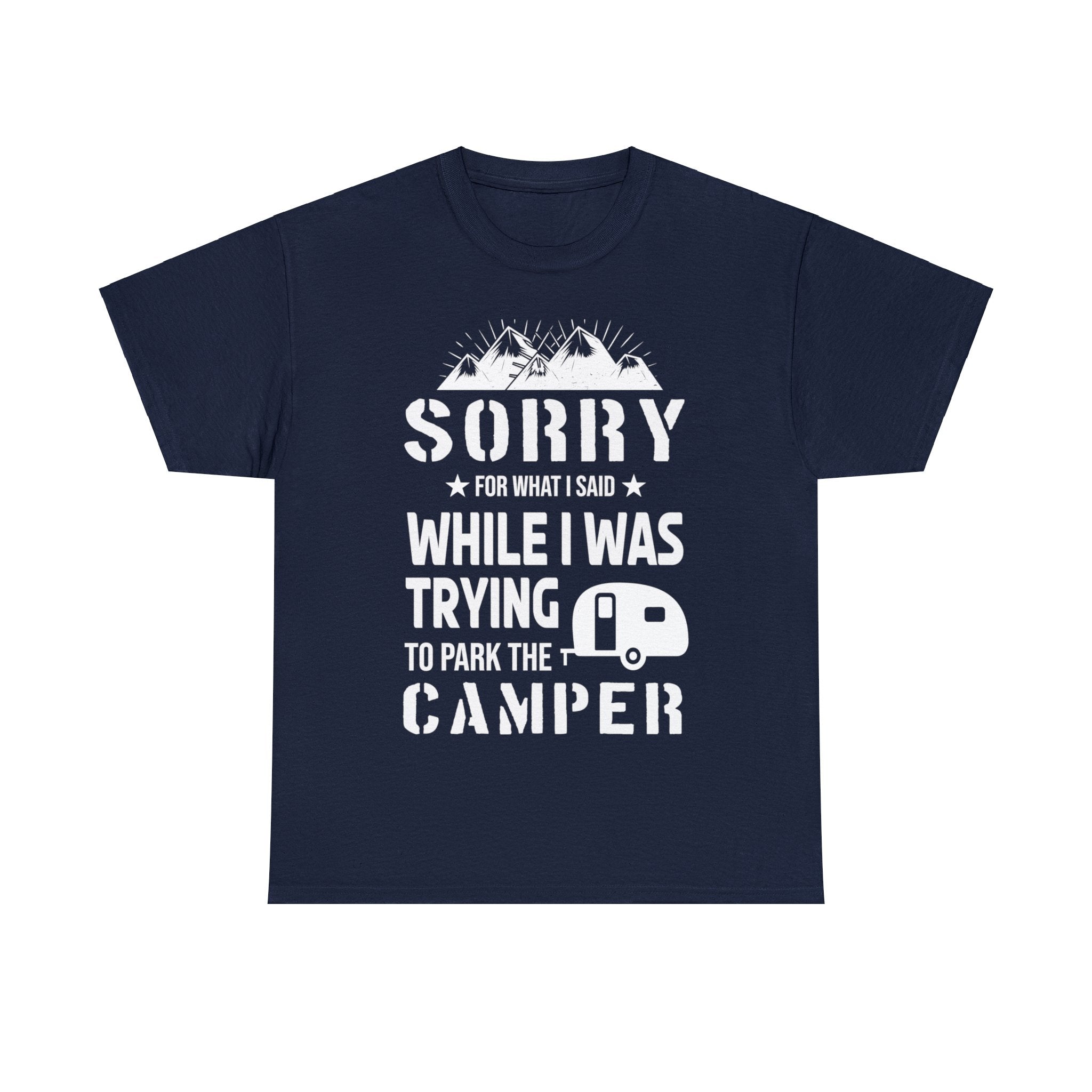 Express your parking struggles with our ''Sorry for What I Said T-Shirt.'' This tee is all about turning those campground mishaps into lighthearted humor. It's perfect for campers, RV enthusiasts, or anyone who's had a comical parking experience. The design features a camper and a humorous message, making it a fun conversation starter. This shirt goes beyond clothing; it's a way to share your camping adventures with a touch of laughter and goodwill.