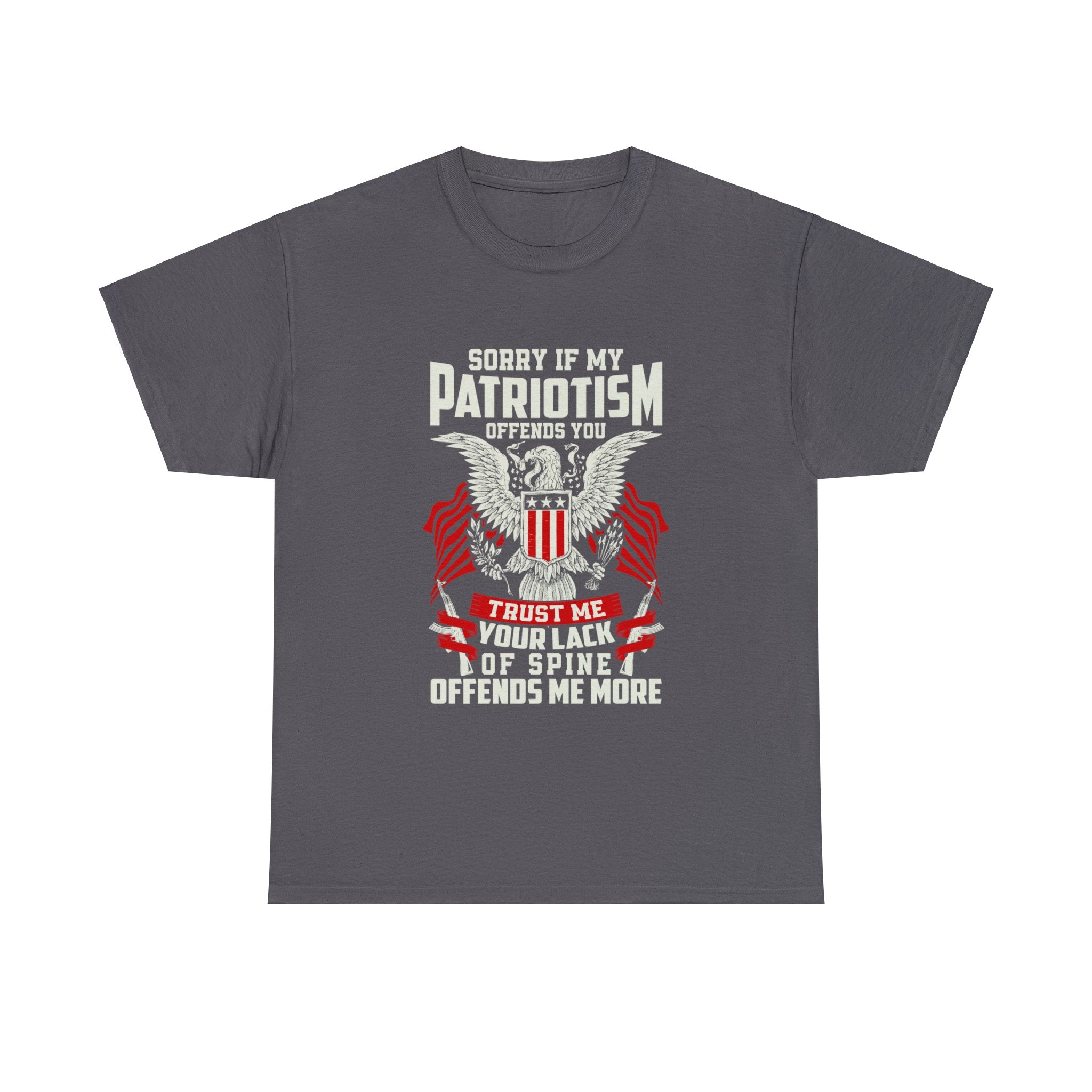 Introducing the "Sorry if My Patriotism Offends You T-Shirt"—a brand-new chapter in bold self-expression. Crafted for the unapologetic patriots, this tee is not just a garment; it's a fearless assertion of values. The design, a unique blend of graphics and text, stands as your shield, proclaiming that your love for country is unwavering. Wear it confidently, stand tall, and let the world know that your patriotism is resolute and unapologetic. Each stitch tells a story of pride.