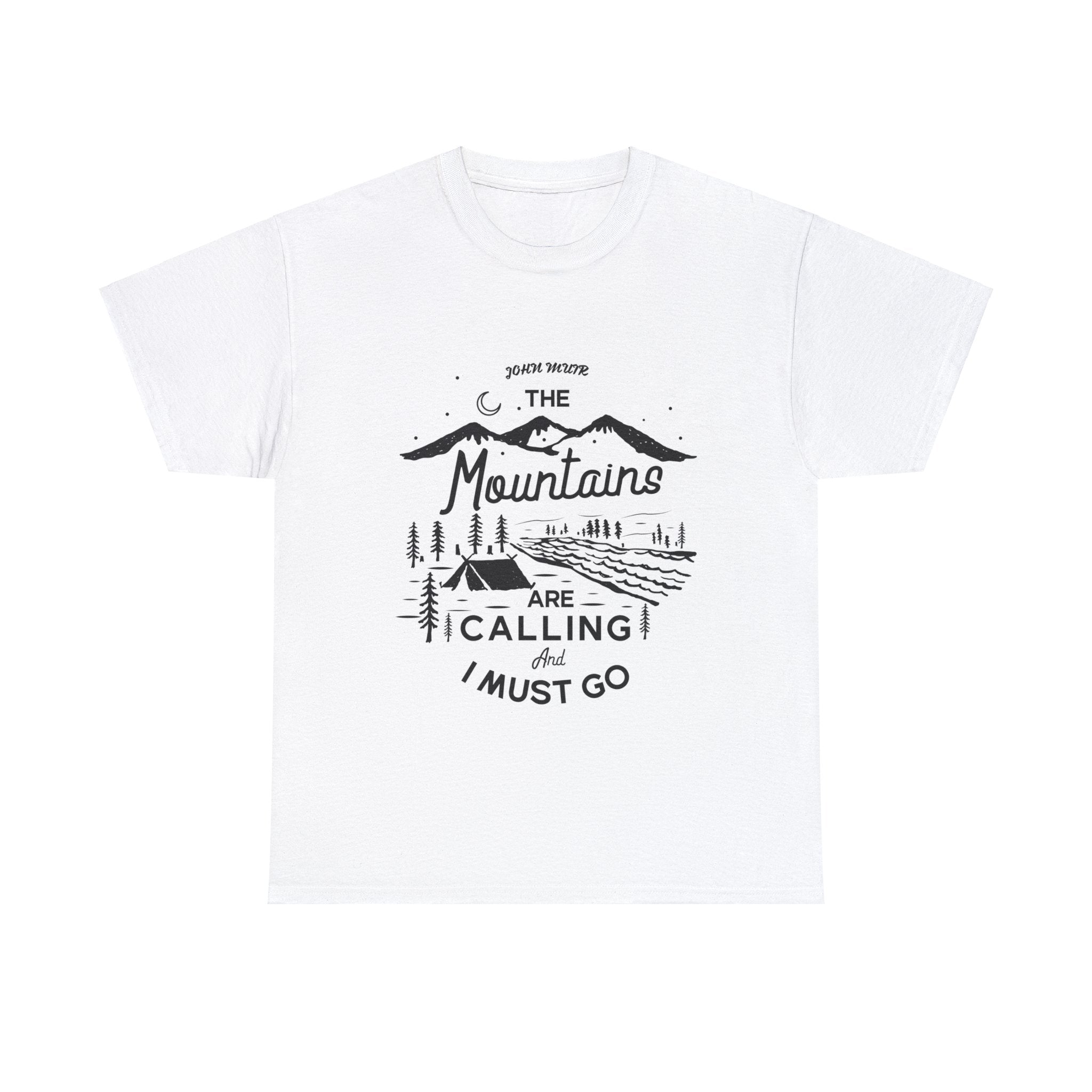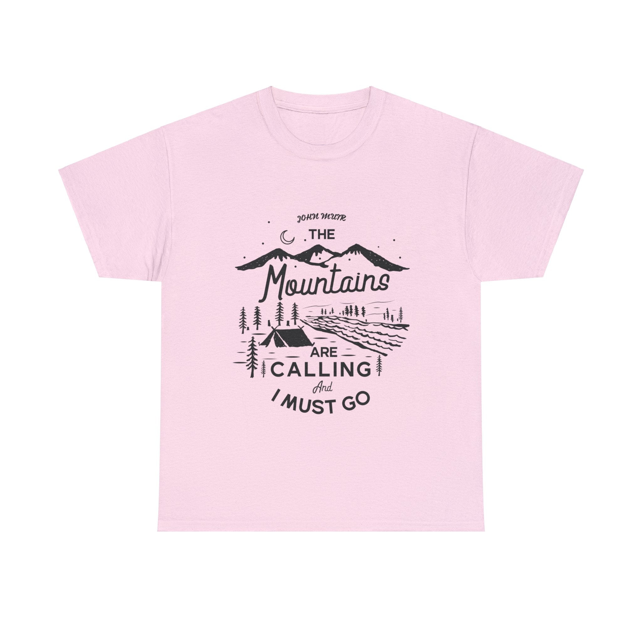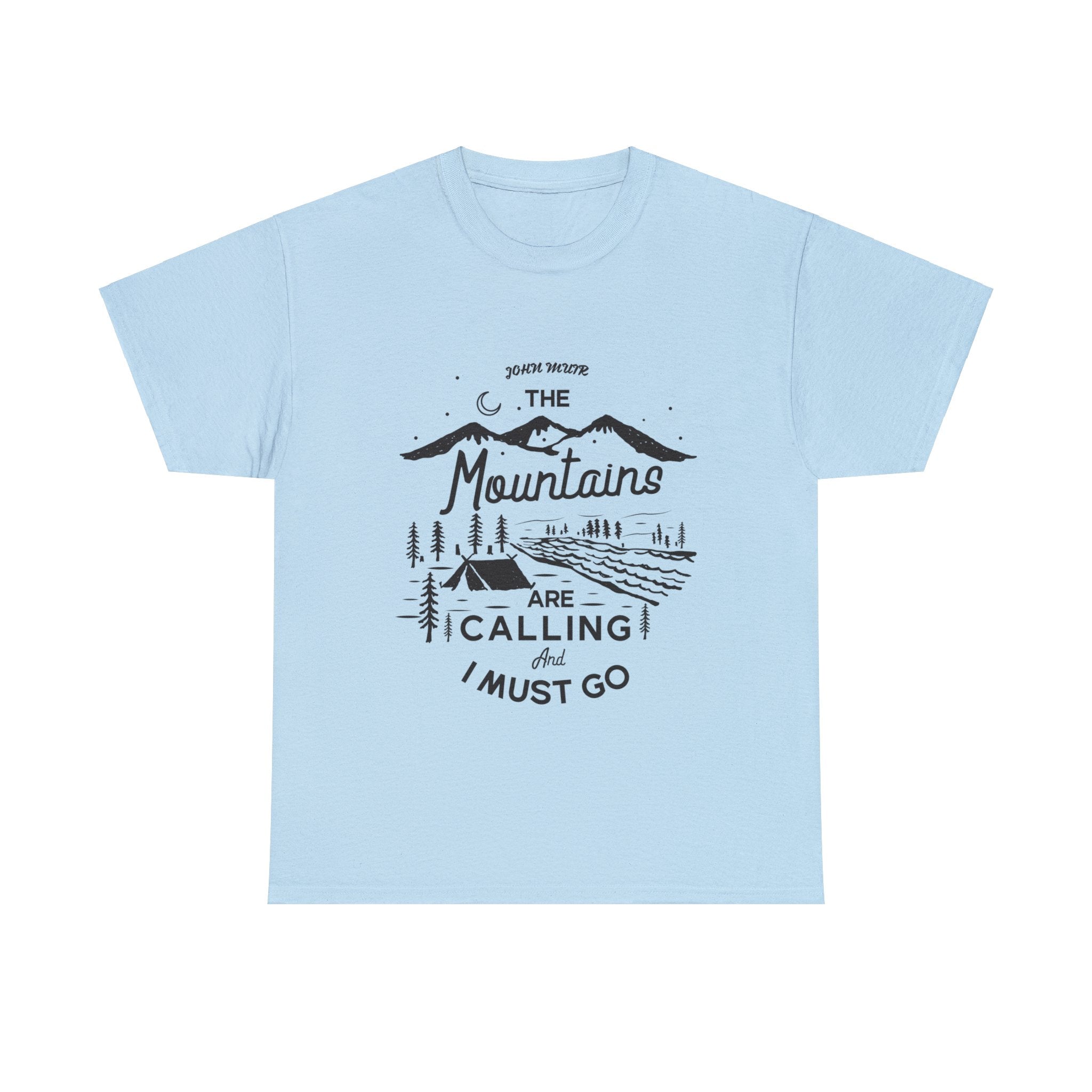 Answer the call of the mountains with our ''The Mountains Are Calling, and I Must Go T-Shirt.'' This tee is for those who feel the irresistible pull of the peaks, and their heart belongs to the great outdoors. It's a perfect match for mountain enthusiasts, hikers, and anyone who can't resist the allure of nature's grandeur. The design adds a touch of playfulness to your love for mountain adventures, making this shirt more than just clothing; it's a playful declaration of your unwavering bond with the mountains.