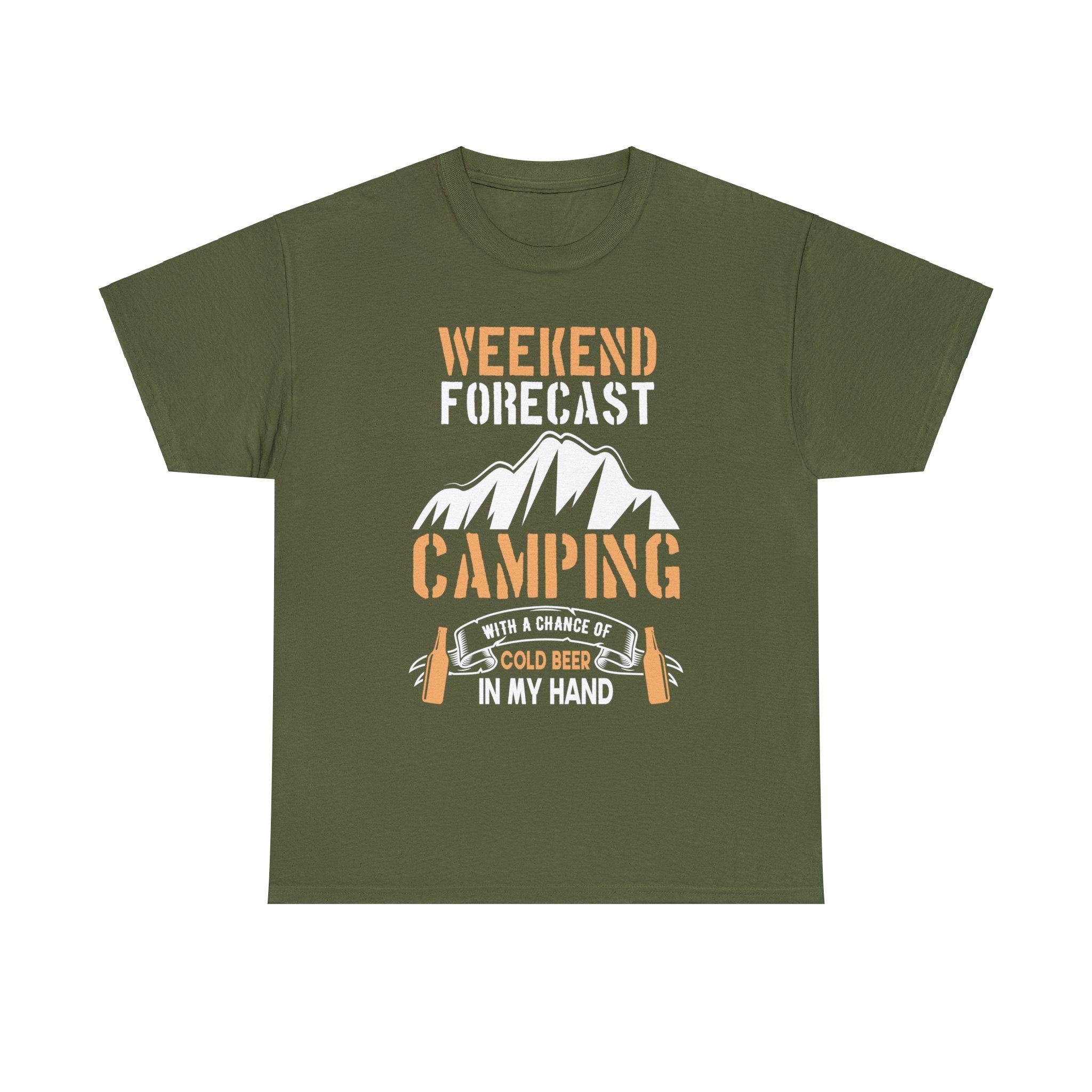 Planning a weekend getaway? The ''Weekend Forecast: Camping With A Chance of Cold Beer T-Shirt'' has got your vibes covered! This tee is the perfect blend of your love for camping and, well, the chance of sipping on some frosty brews in the great outdoors. The design is all about that carefree camping spirit and enjoying the simple pleasures in life. Whether you're an avid camper, a beer aficionado, or just up for a good time, this shirt lets you flaunt your weekend spirit and love for nature with a dash of style. It's your ticket to fun, a nod to the outdoors, and the perfect attire for laid-back moments.