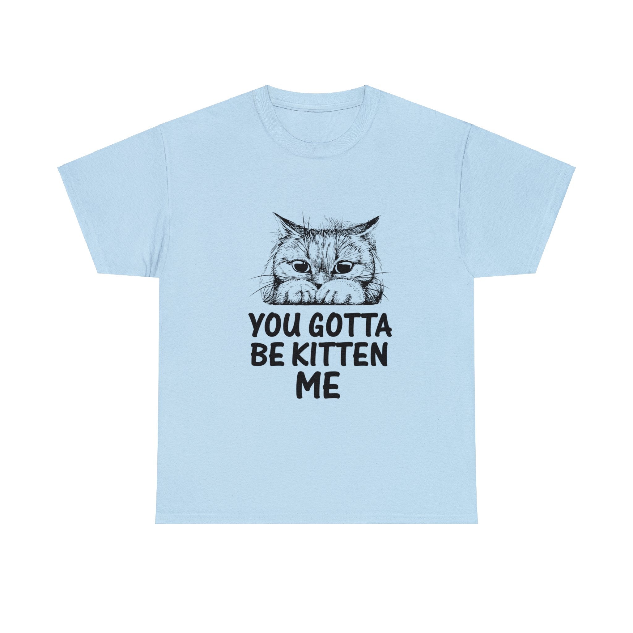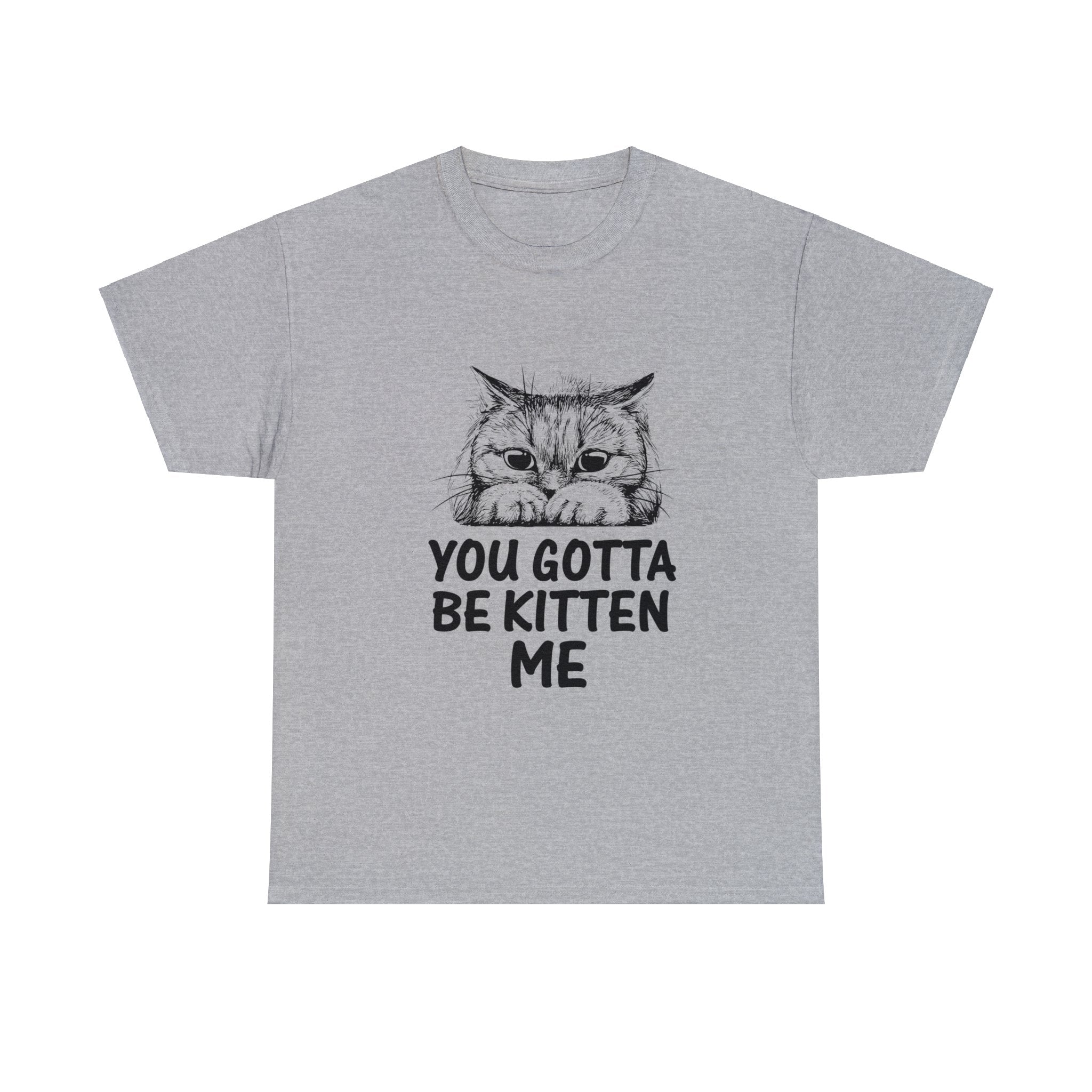 Prepare for an endless supply of feline puns, playful antics, and endless bouts of laughter with this hilarious cat tee that embodies the phrase "You Gotta Be Kitten Me." It perfectly captures the absurdity of cats and their uncanny ability to make us laugh. Whether witnessing their mischievous antics or marveling at their quirky behaviors, cats are sure to keep us entertained and amused. Embrace the silliness and enjoy the endless fun that comes with being a cat aficionado.